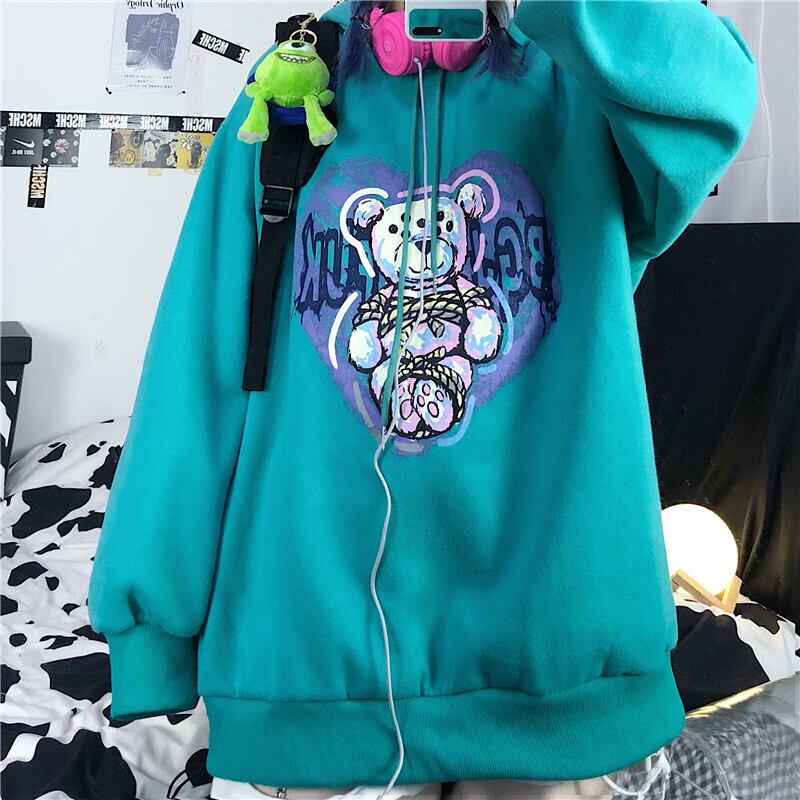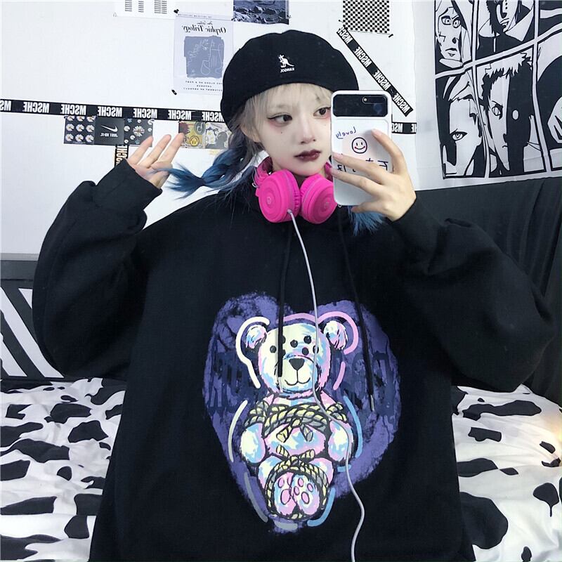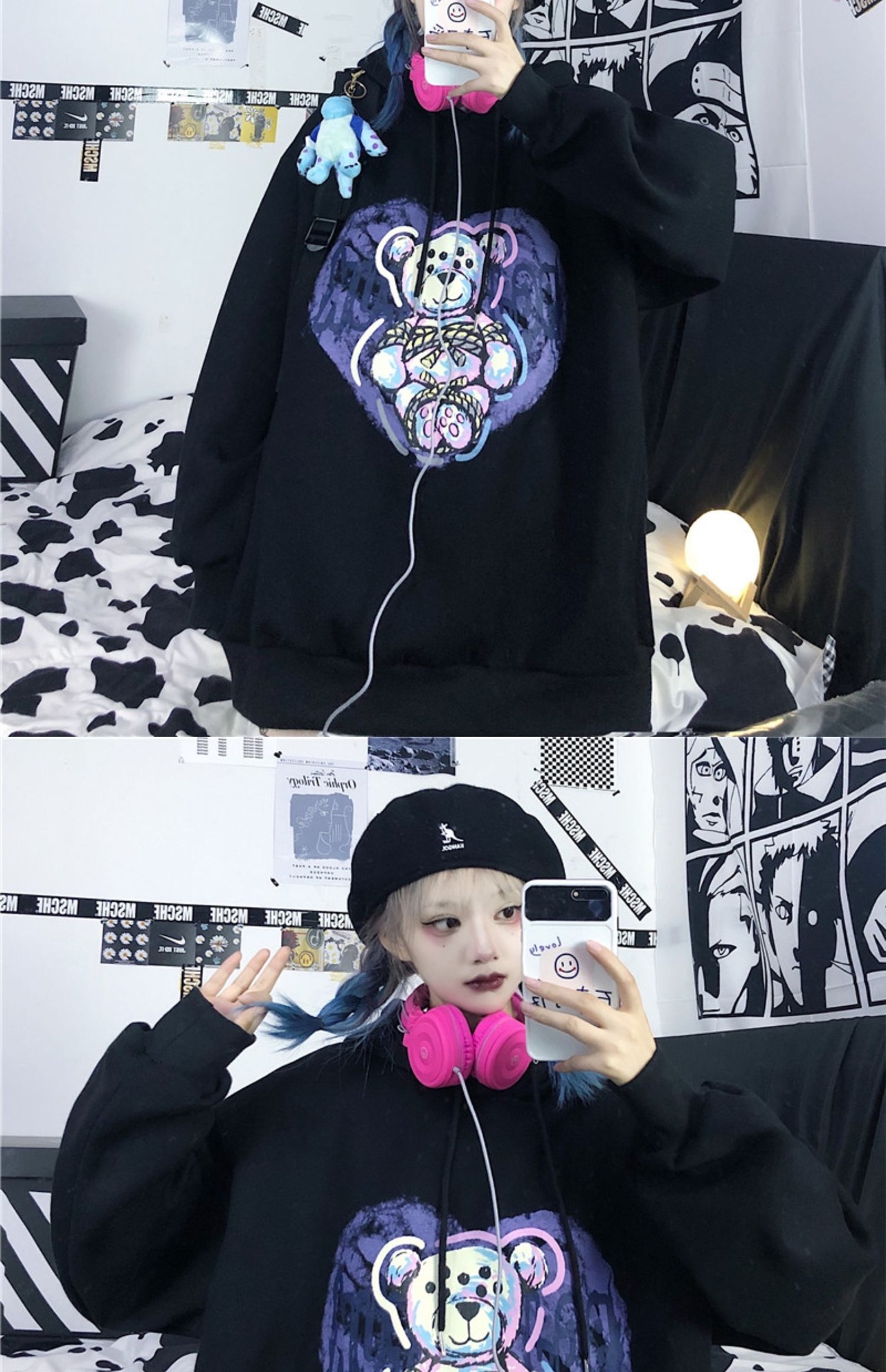 セーター レディース秋物ウィンター韓国ファッショントレンドプリント柄ルーズ厚みフードジャケット オータム 冬物 ボーイズ スタイル デーモン73118873277