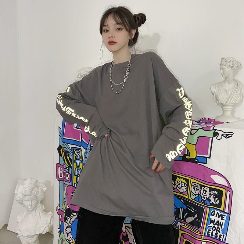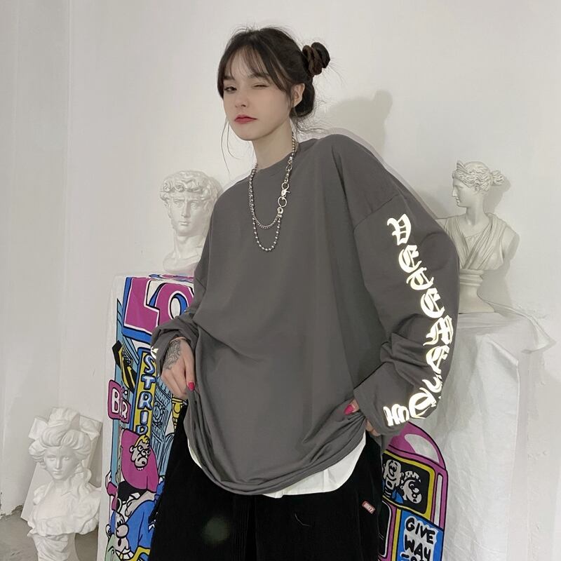 トップス 秋物韓国ファッショントレンドスタイルルーズTシャツ ロング ストリート 原宿 オータム ボーイズ 長袖 デーモン5440030668