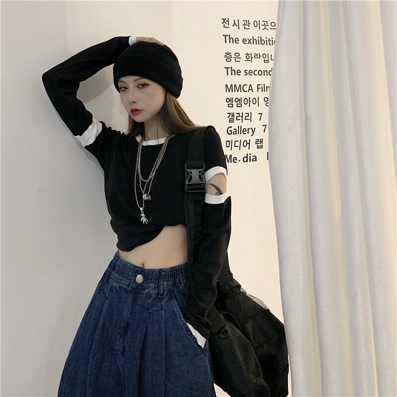 Tシャツシャツ 秋物韓国ファッショントレンドスリムトップス ゆったり ロング オータム 長袖 デーモン96928631156