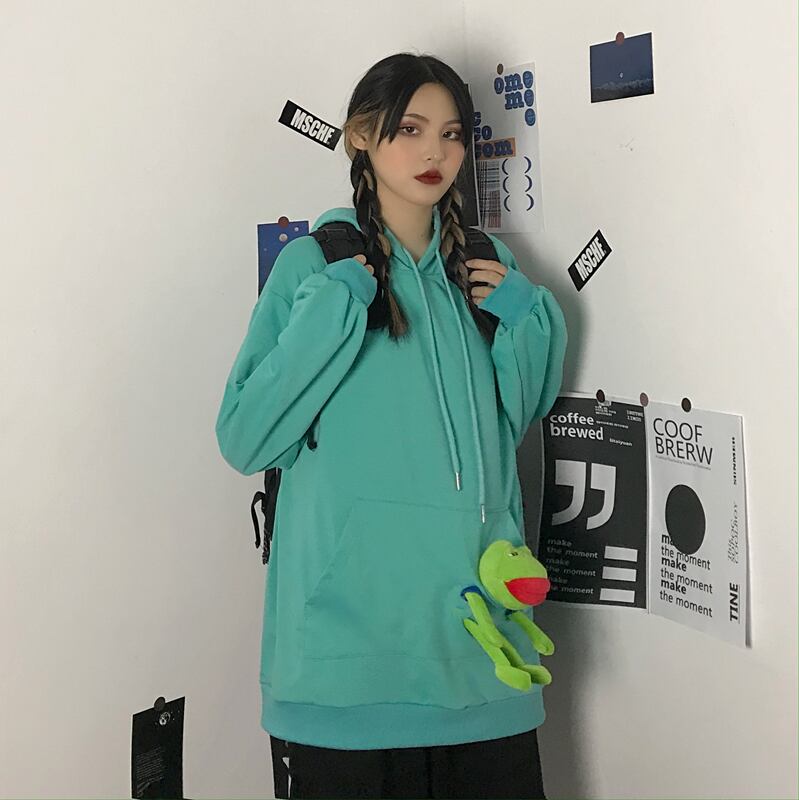 トップス 秋物レディース韓国ファッショントレンドフードジャケット ルーズセーター ロング オータム 長袖 デーモン68620198362