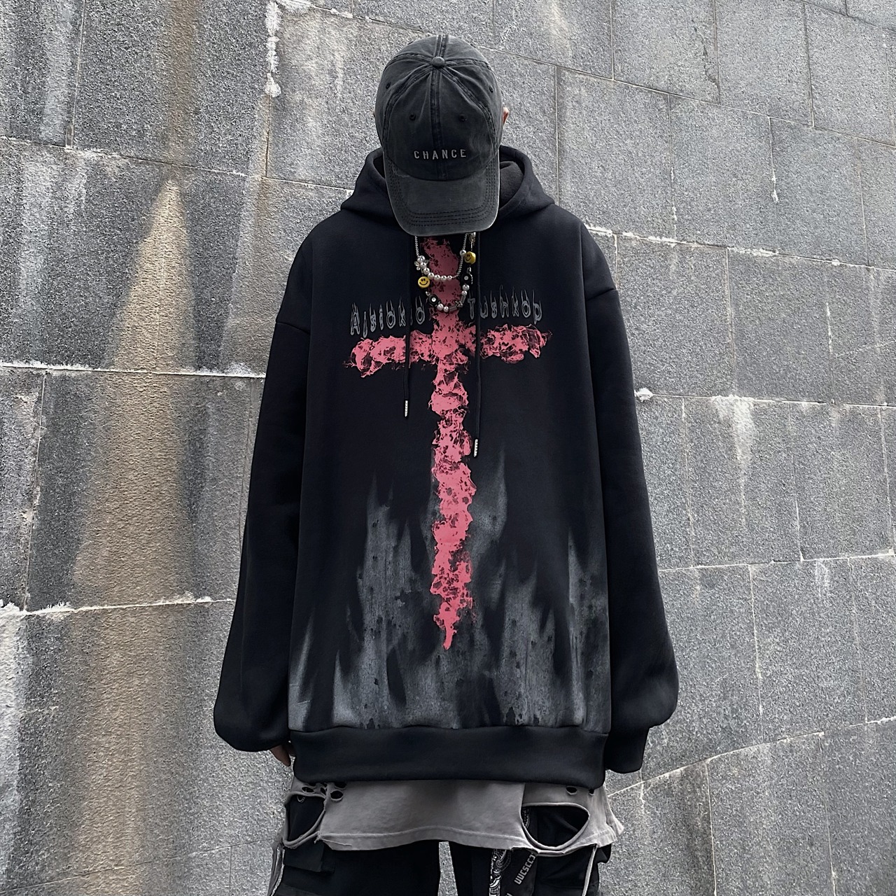 セーター レディース韓国ファッショントレンドダーククロスプリント柄ルーズフードジャケット オータム 秋物 ウィンター 冬物 スタイル デーモン42719618256