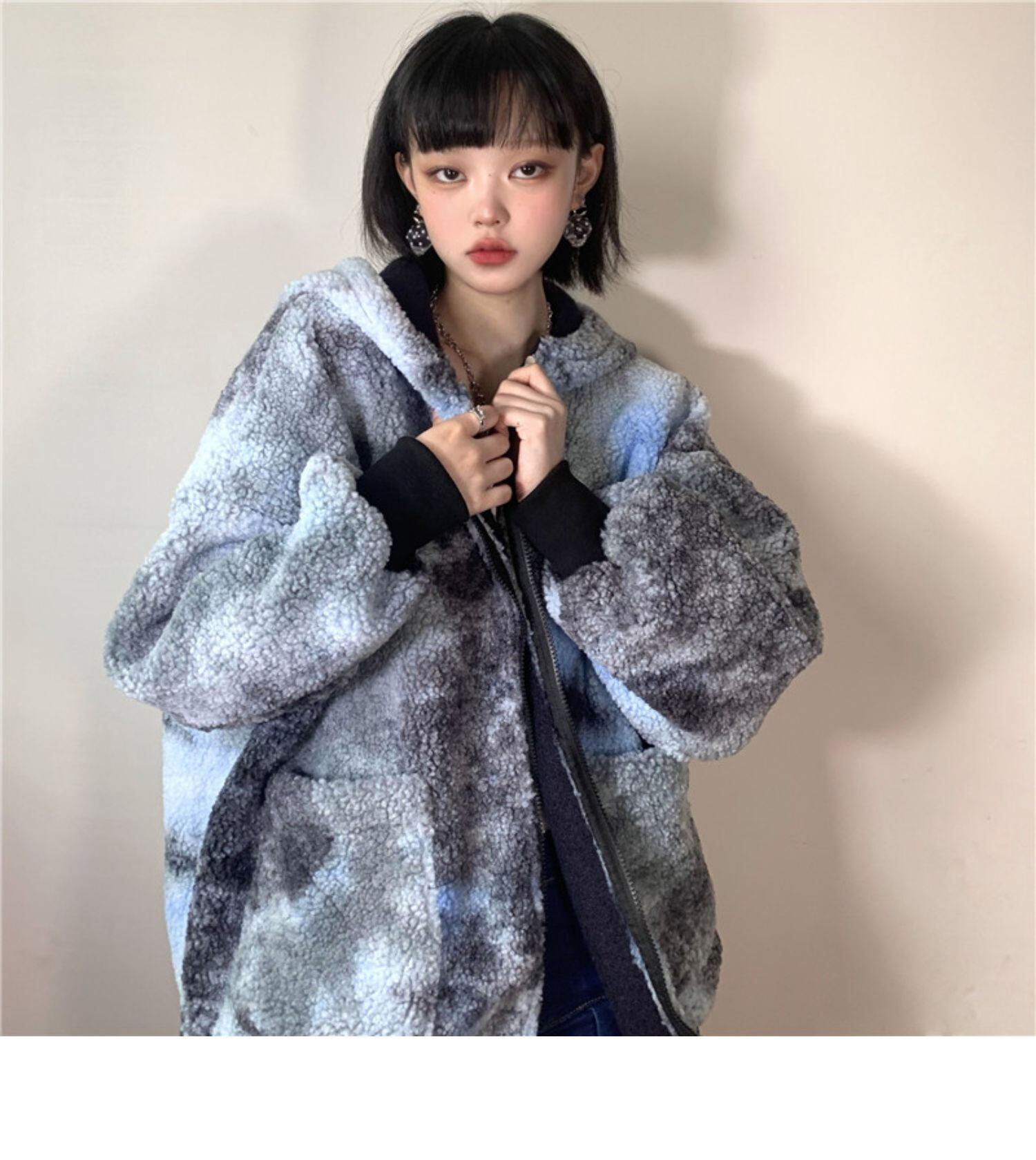 ウィンタージャケット レディース韓国ファッショントレンドウールルーズプリント コットン 冬物 スタイル デーモン79991602381