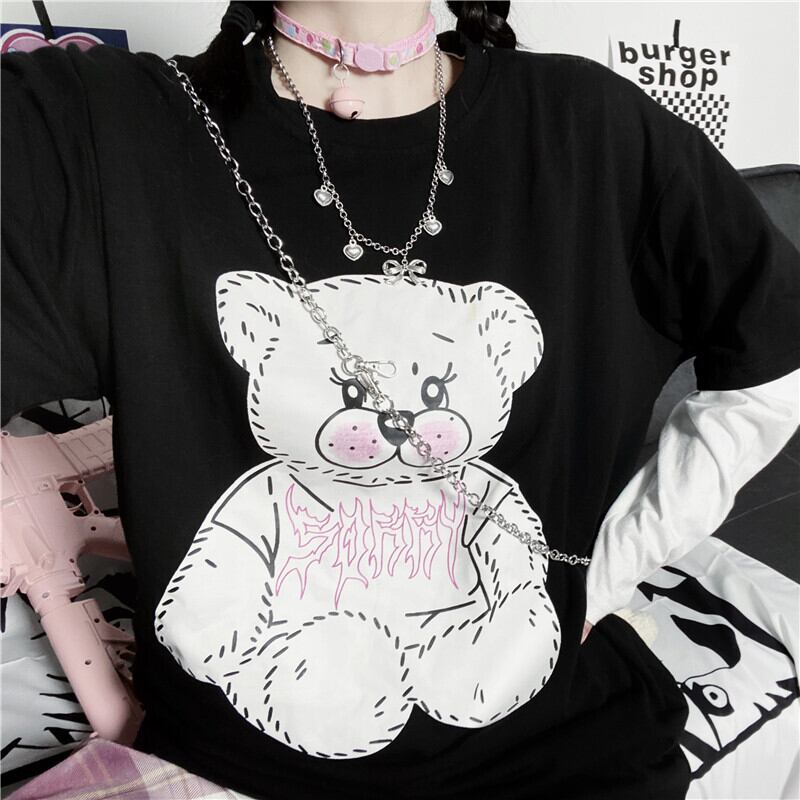 Tシャツトップス レディース秋物韓国ファッショントレンドプリント柄ルーズ長袖スリーブ ロング オータム ボーイズ スタイル デーモン39785250232