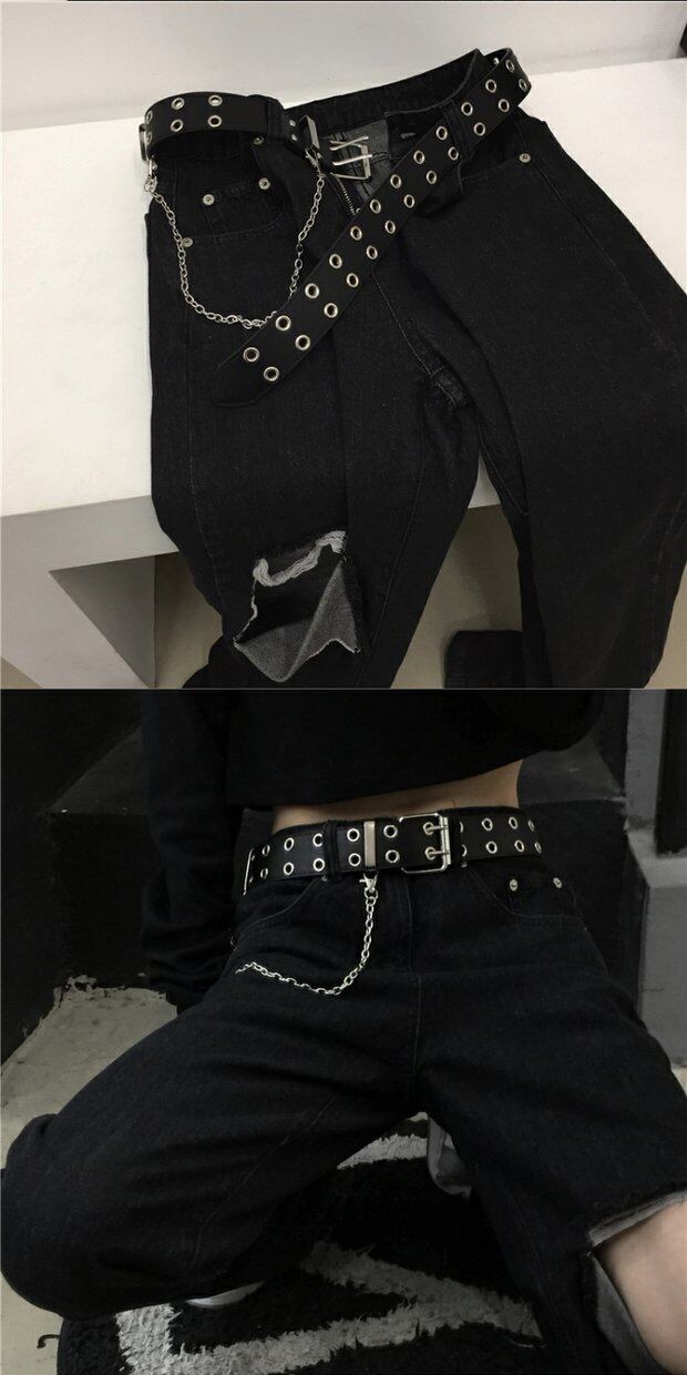 ベルト レディース韓国ファッショントレンドスタンダードブラックダブルブレストメタルチェーン レトロ ハーネス デーモン41866422764