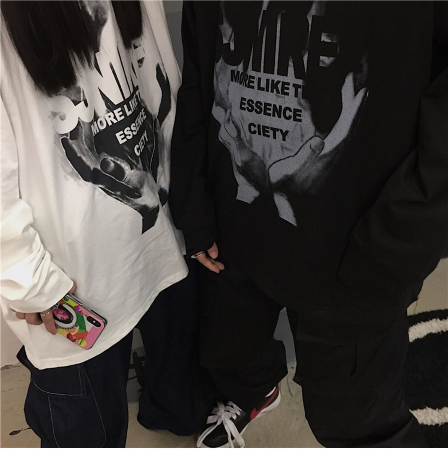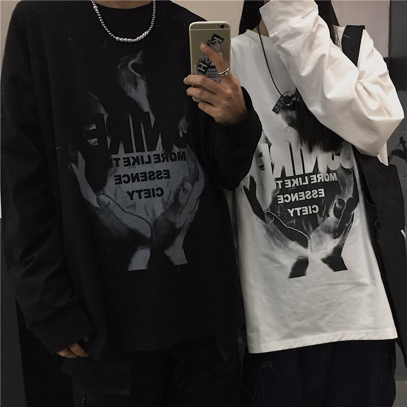 トップス レディース秋物韓国ファッショントレンドダークプリントルーズTシャツ ロング オータム スタイル 長袖 デーモン16415707192