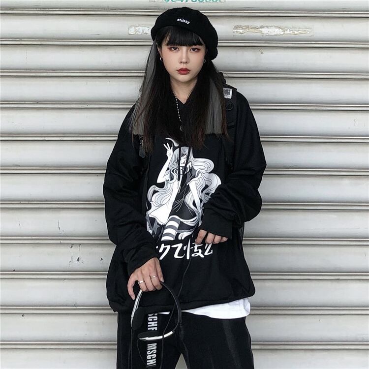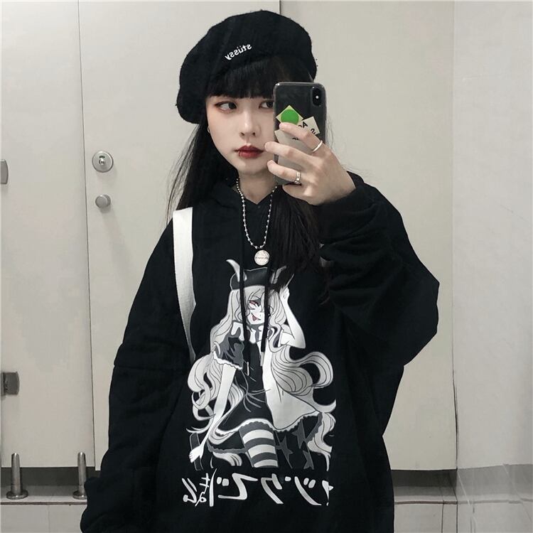 秋物ウィンタージャケット レディース韓国ファッショントレンドダークプリントルーズ厚みフードセーター オータム 冬物 ボーイズ スタイル デーモン86904377142