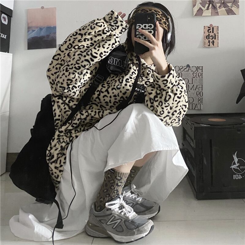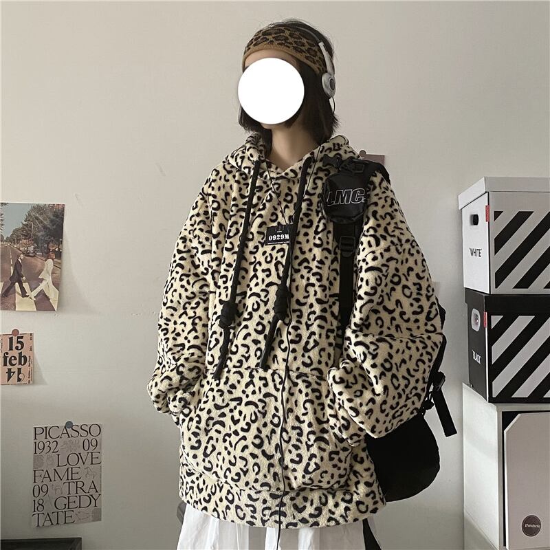 セーター レディース韓国ファッショントレンドスタイルレオパードプリント柄ルーズプルオーバー フードジャケット 原宿 ウィンター 冬物 デーモン23344106257