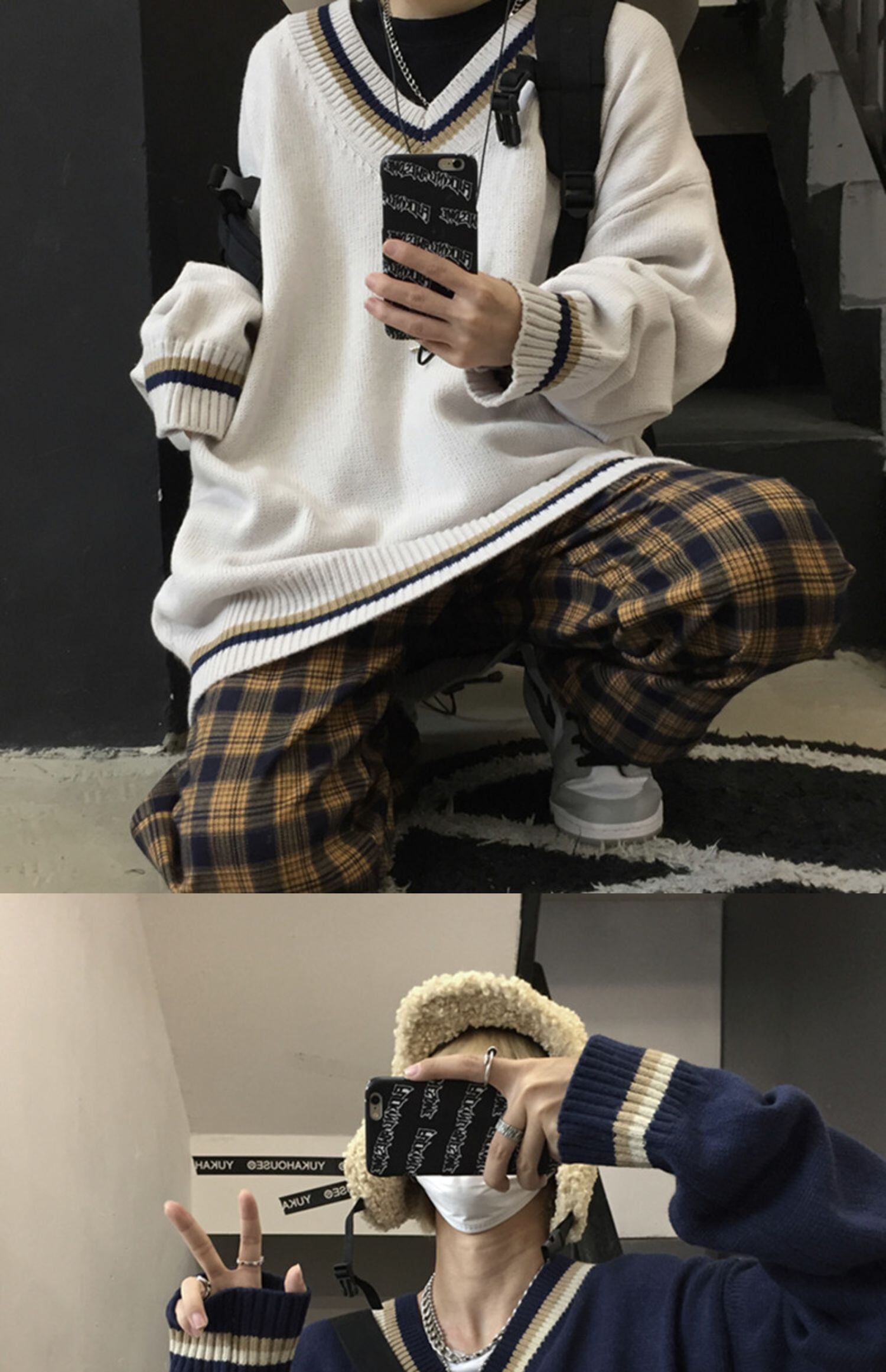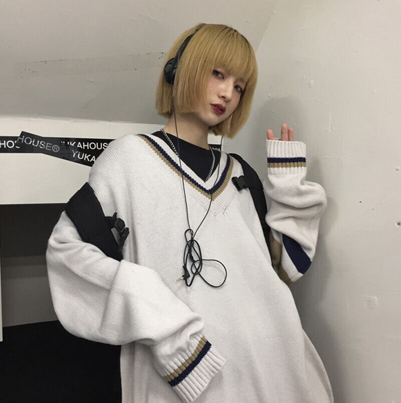セーター レディース秋物ウィンター韓国ファッショントレンドスタンダードVネックルーズプルオーバー コート レトロ オータム 冬物 ボーイズ スタイル デーモン86790439408