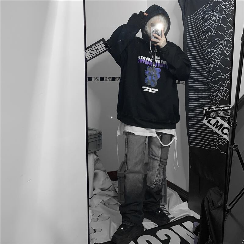 セーター レディース秋物ウィンター韓国ファッショントレンドプリント柄ルーズフードジャケット オータム 冬物 ボーイズ スタイル デーモン36931602714