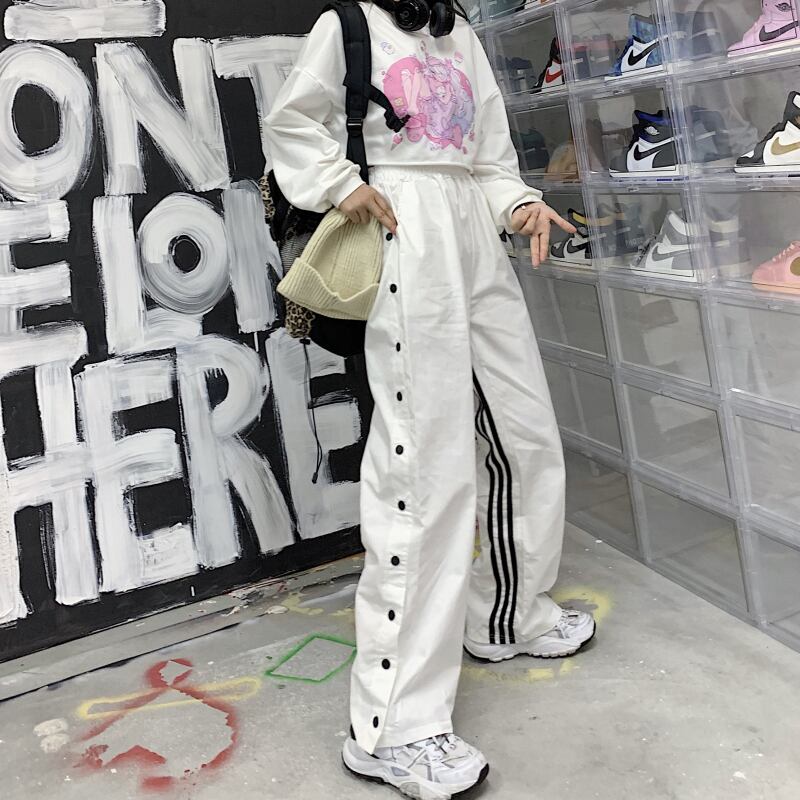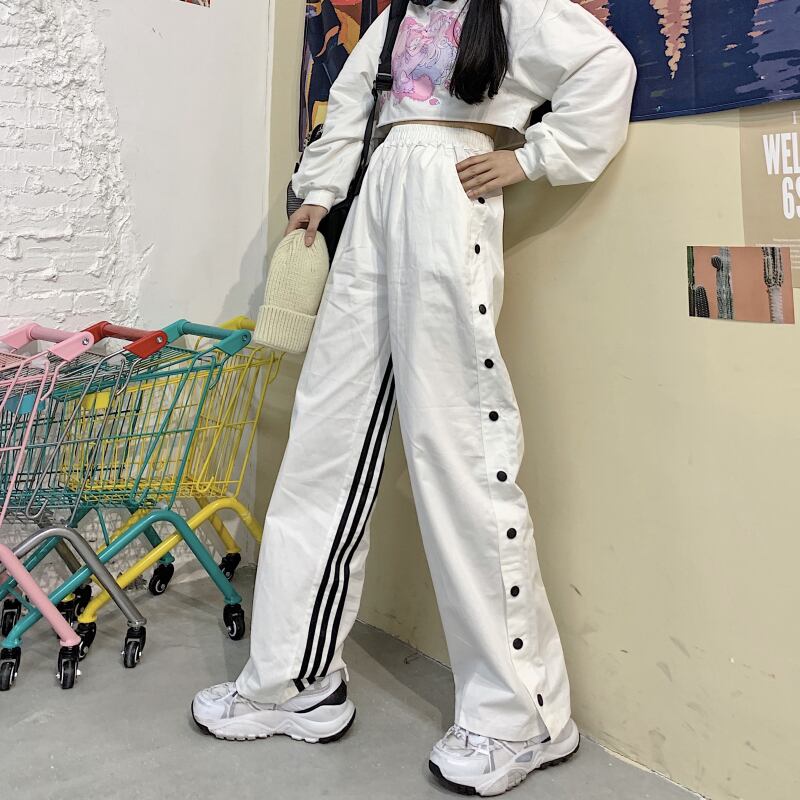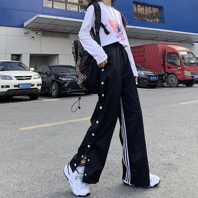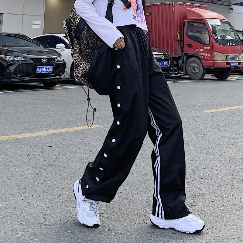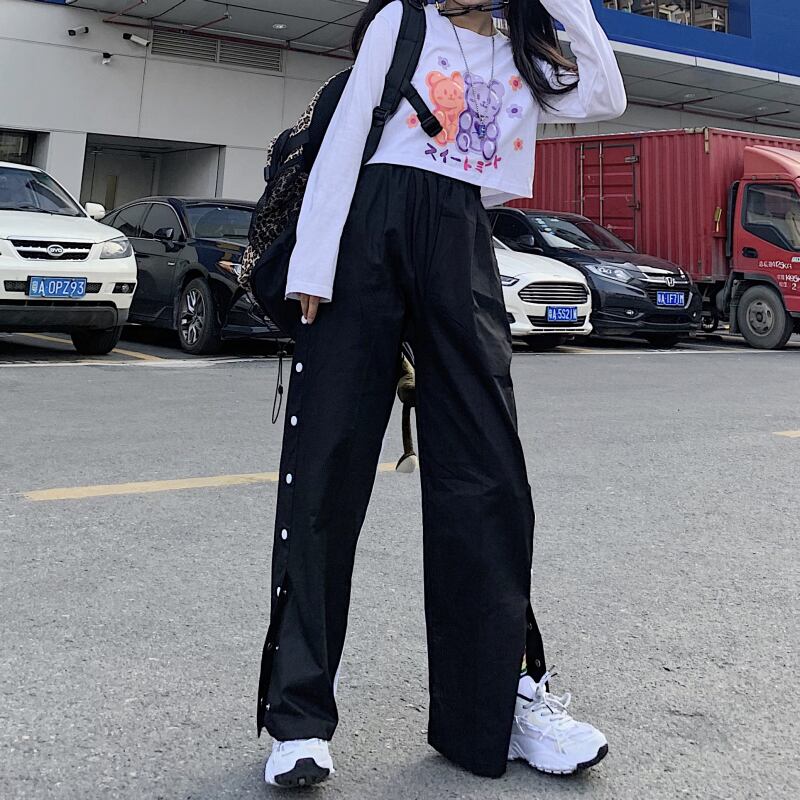 ワイドレッグパンツ レディース韓国ファッショントレンドブレストブラックルーズハイウェストウェストスリムカジュアル ストリート ワイドパンツ ボーイズ スタイル ウエスト デーモン21633779996