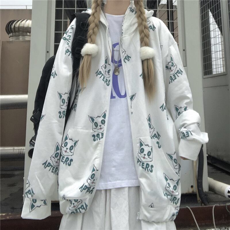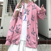 秋物ウィンタージャケット レディース韓国ファッショントレンドスタイルプリント柄ルーズフードトップス 原宿 オータム 冬物 デーモン45265348593