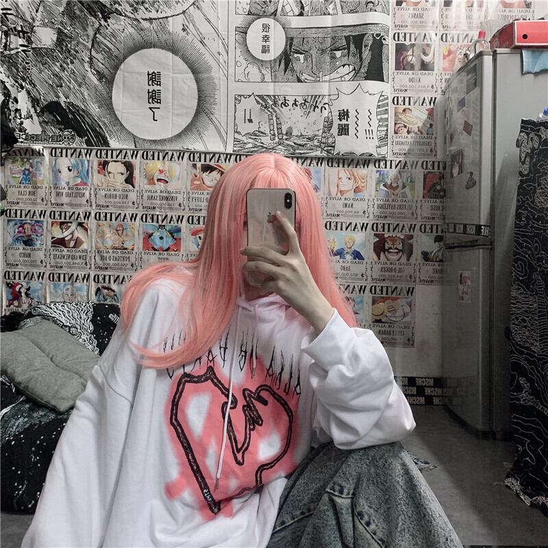 フードトップス レディース秋物韓国ファッショントレンドプリントジャケット ルーズセーター ロング オータム スタイル 長袖 デーモン12372006929