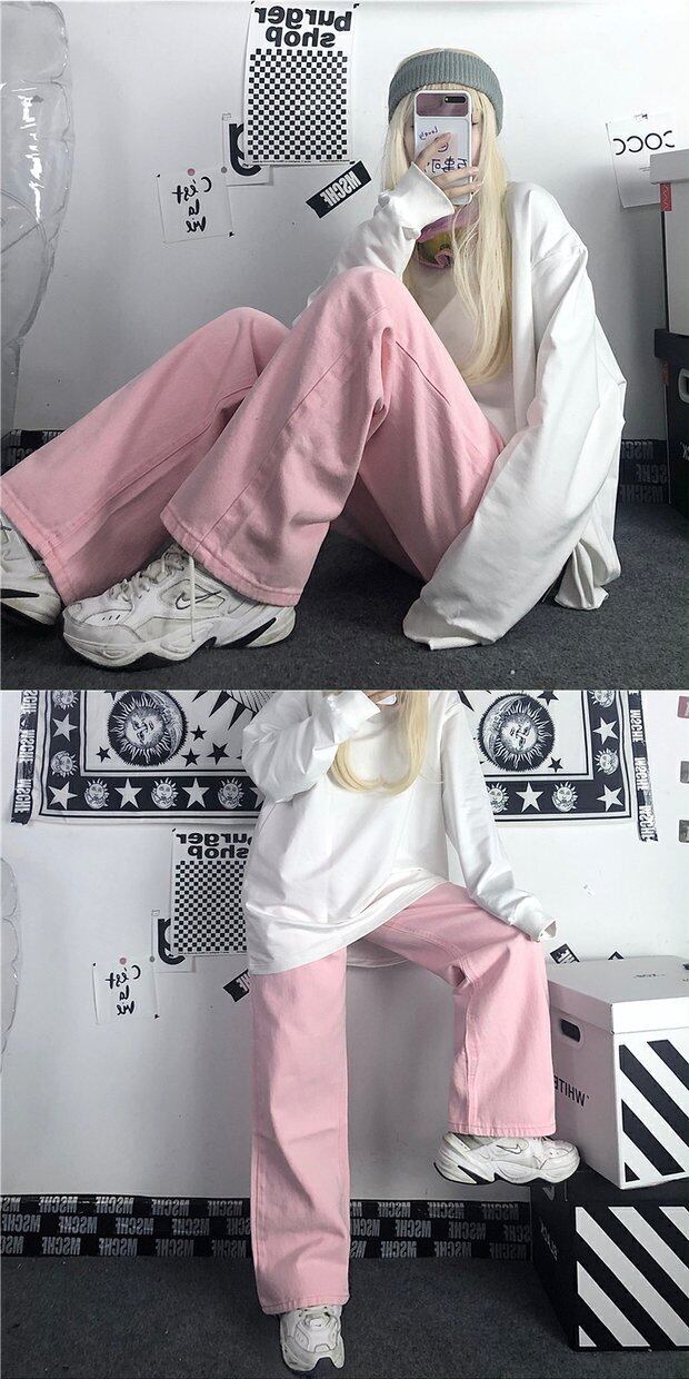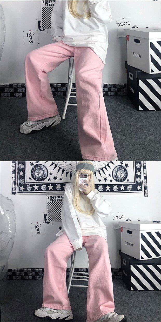パンツ レディース韓国ファッショントレンドジーンズ ルーズハイウェストウェスト薄手ワイドレッグ ピンク ストリート ワイドパンツ ボーイズ スタイル ウエスト デーモン38745311462