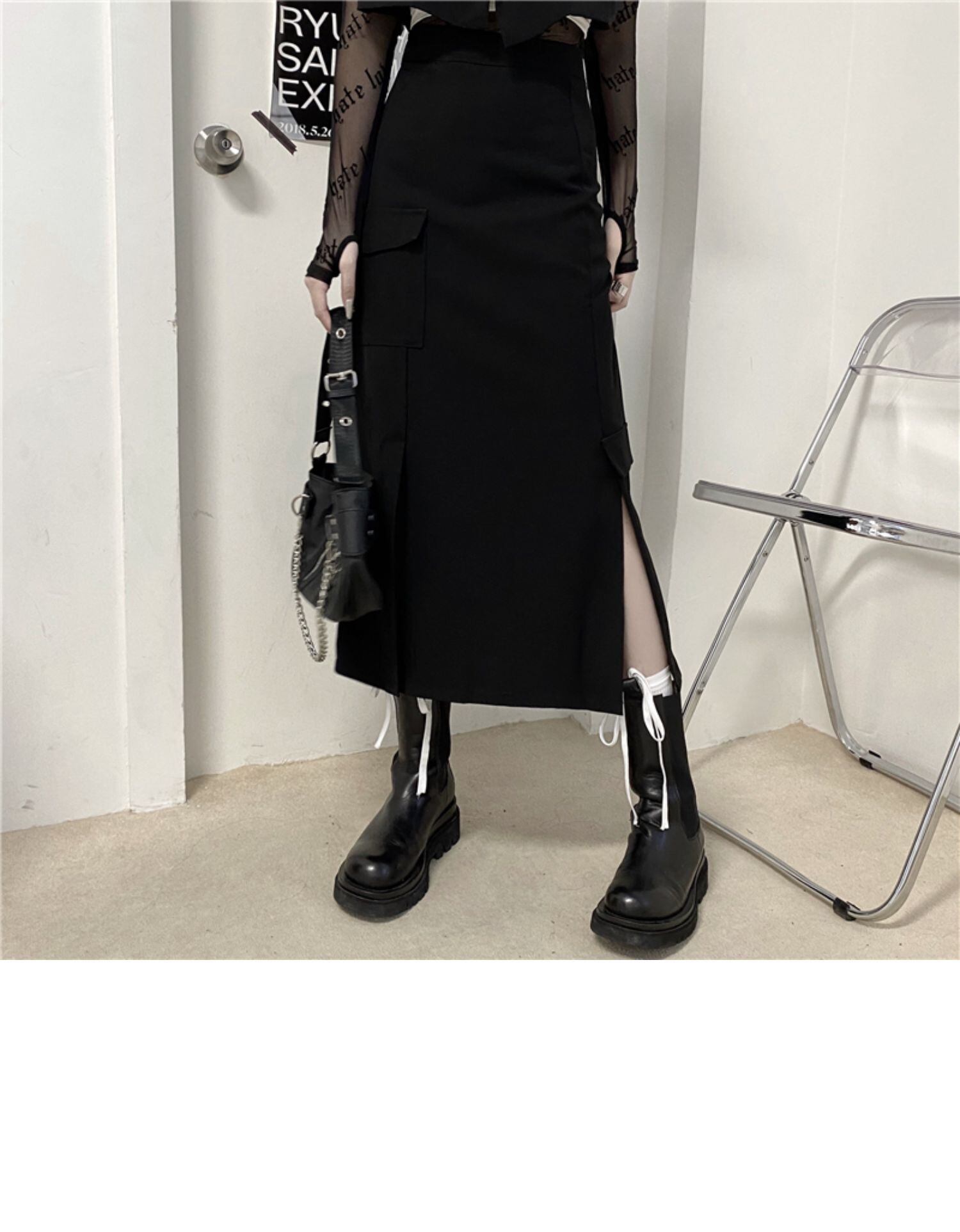 スカート レディース秋物韓国ファッションハイウェストブラック薄手ロングAライン オータム スタイル ウエスト デーモン71599002782