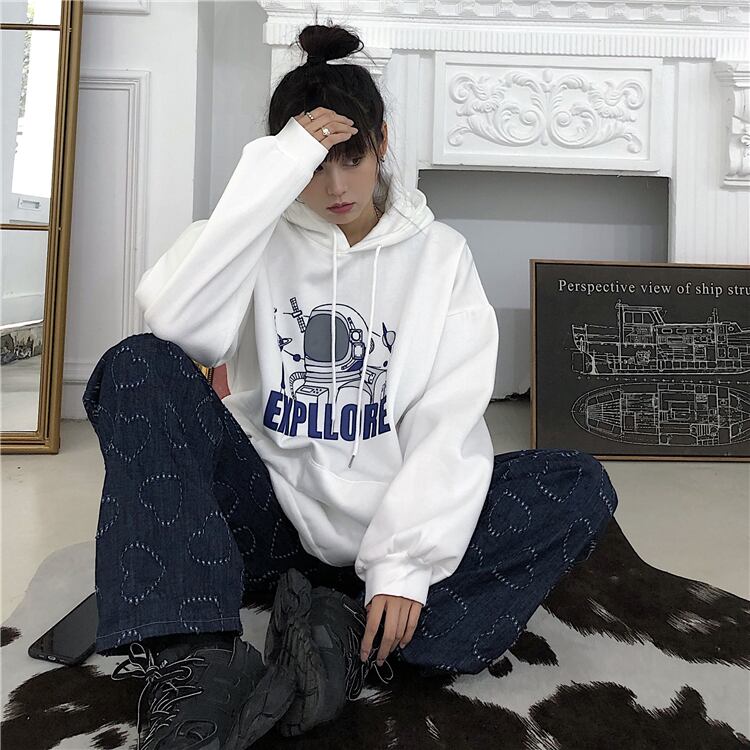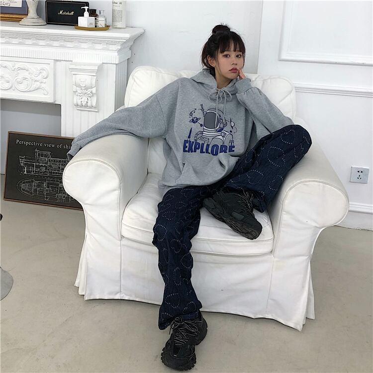 セーター レディース韓国ファッショントレンドプリントルーズフードジャケット オータム 秋物 ウィンター 冬物 ボーイズ スタイル デーモン85587156284