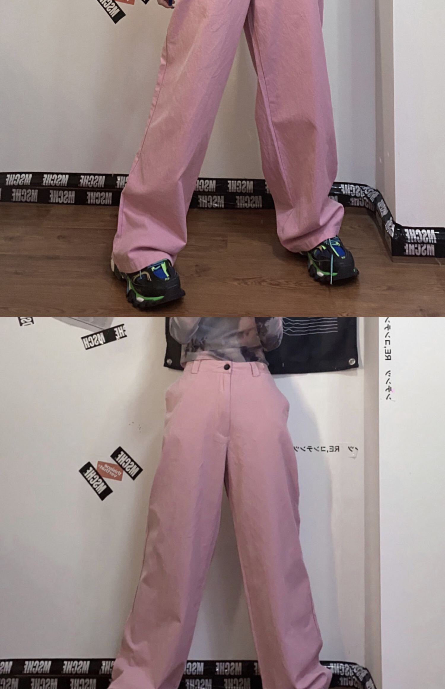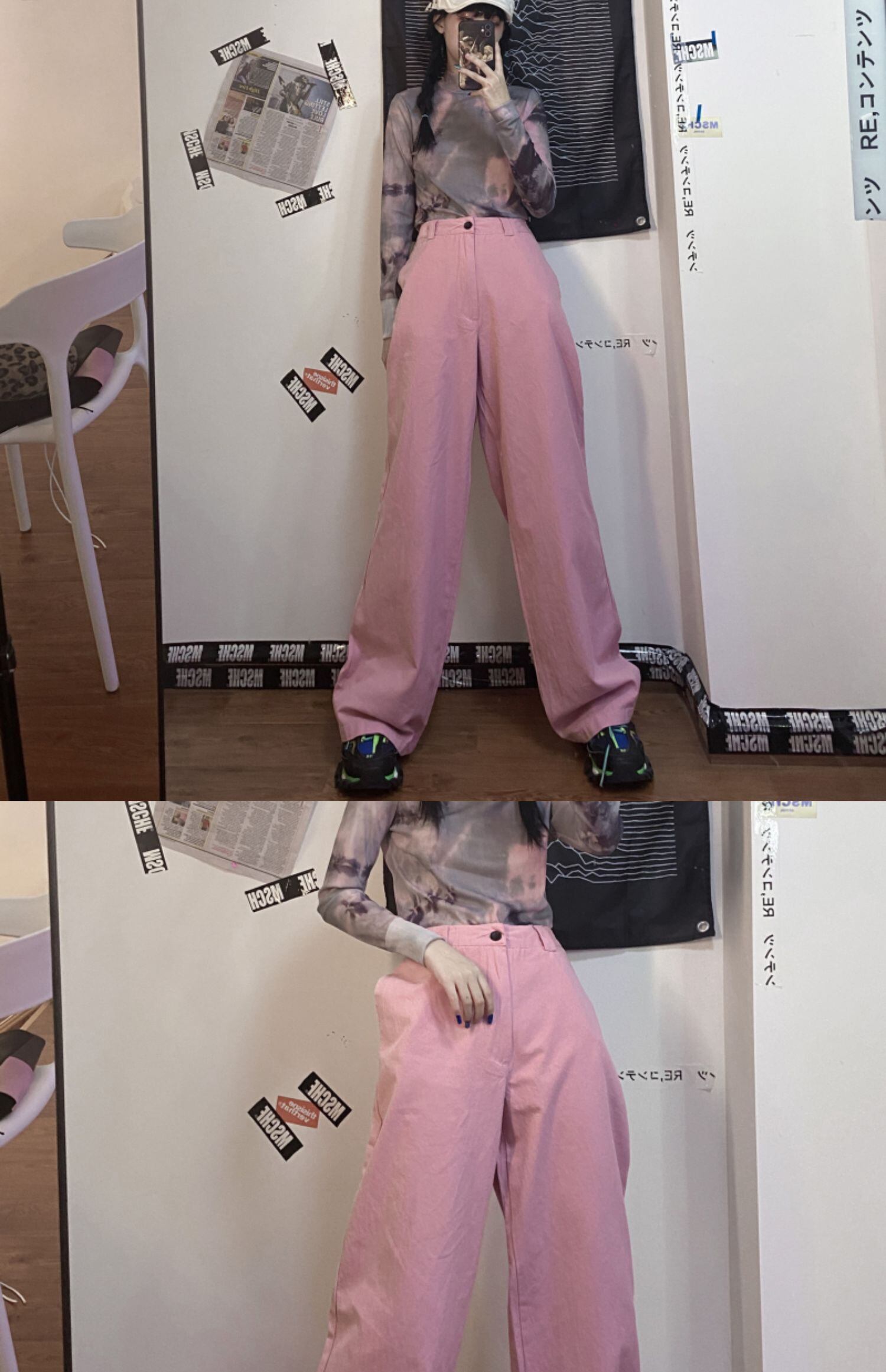 ワイドレッグパンツ レディース韓国ファッショントレンドルーズ薄手ハイウェストウェストカジュアル ピンク ワイドパンツ スタイル ウエスト デーモン40489399689