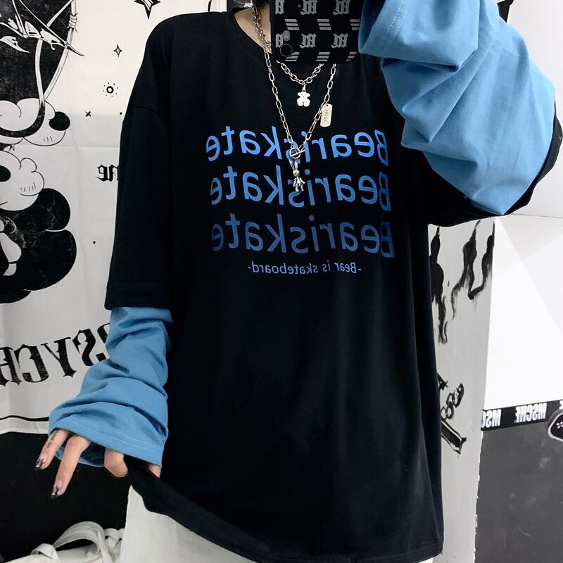 トップス レディース秋物韓国ファッショントレンドスタイルプリントルーズTシャツ ロング 原宿 オータム ボーイズ 長袖 デーモン97968252704