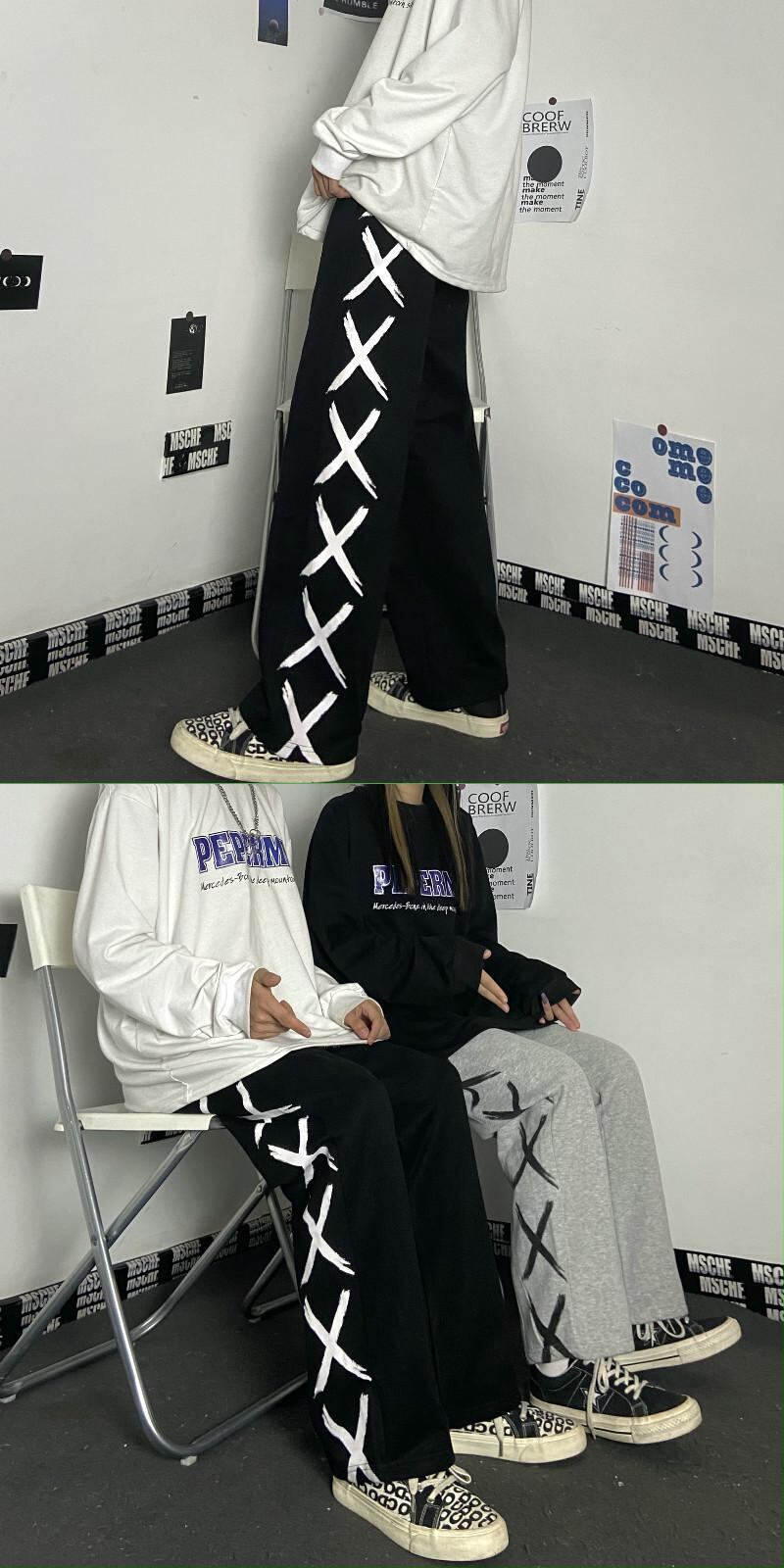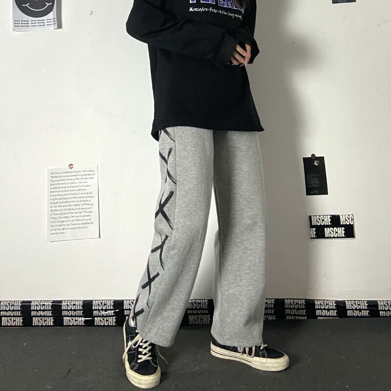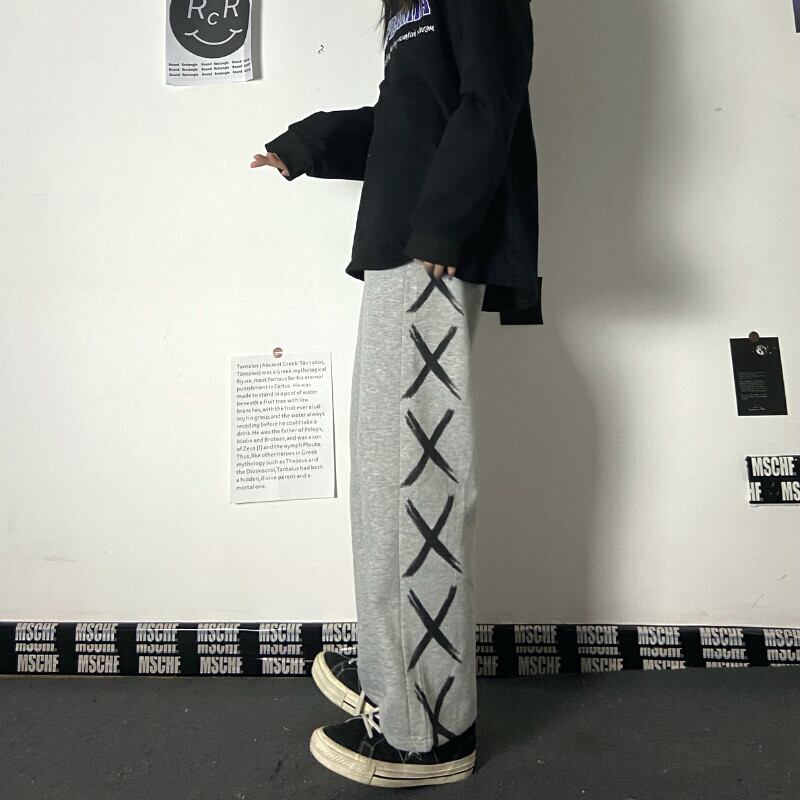 パンツ レディース韓国ファッショントレンドプリントルーズハイウェストウェストスリム ストリート 原宿 ボーイズ スタイル ウエスト デーモン13166126849