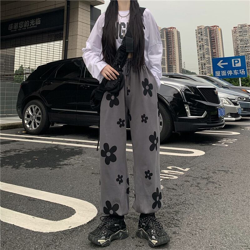 パンツ レディース韓国ファッショントレンドFlowerデザイン プリントレギンス ルーズハイウェストウェストスリム フラワーデザイン ボーイズ スタイル ウエスト デーモン32320031823