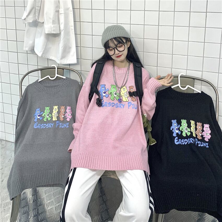 セーター レディース韓国ファッショントレンドプリント柄ルーズコート オータム 秋物 ウィンター 冬物 スタイル デーモン45471497868