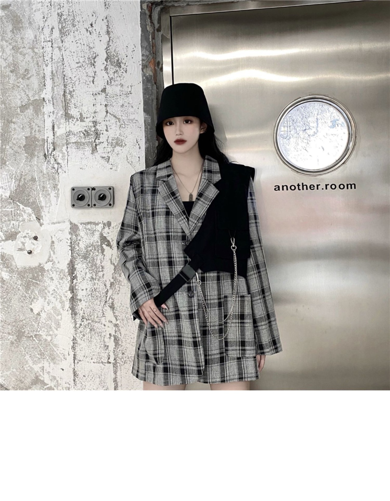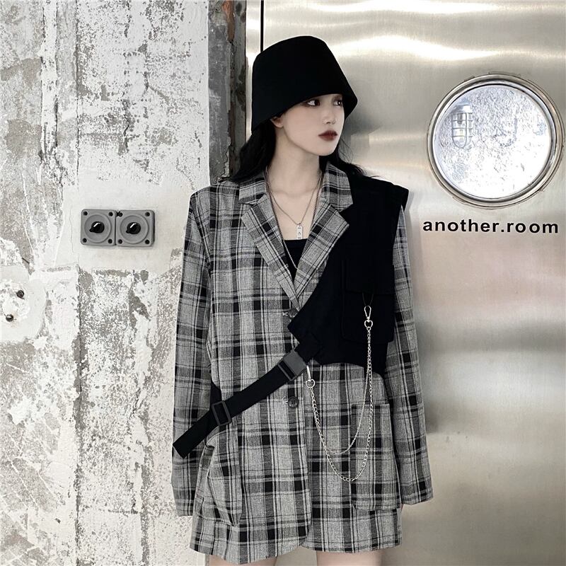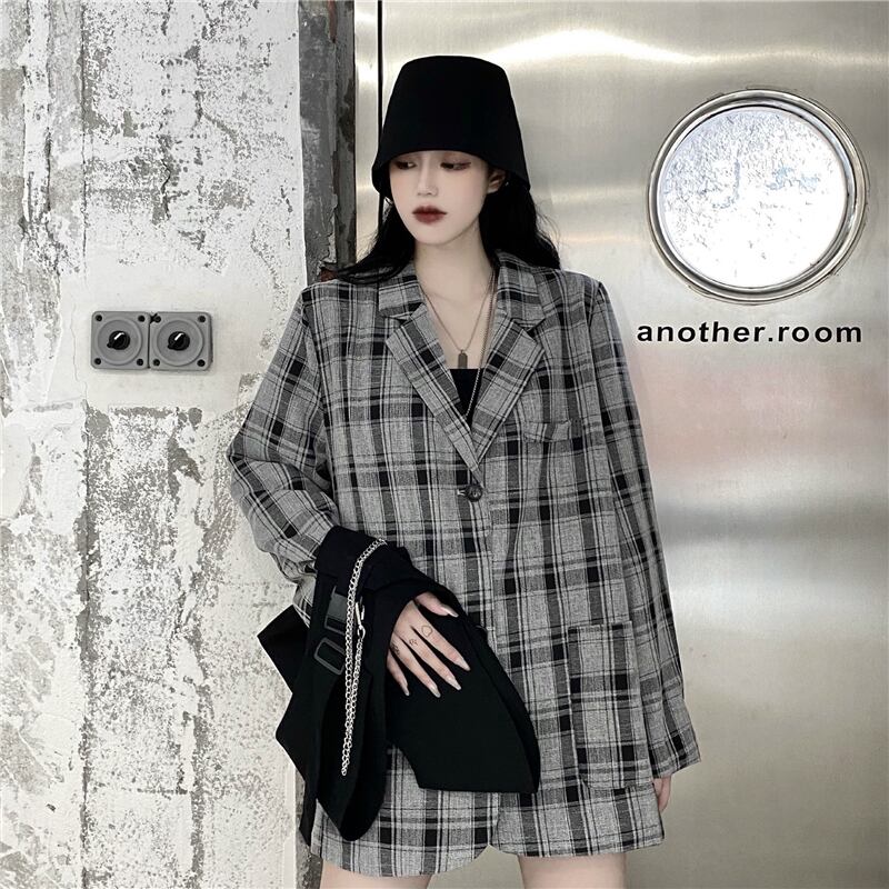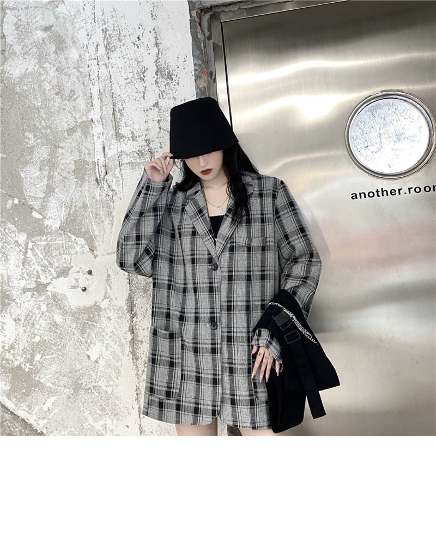 ジャケット レディース秋物韓国ファッショントレンドスタンダードルーズカジュアル格子柄 レトロ オータム ボーイズ スタイル デーモン84242077944