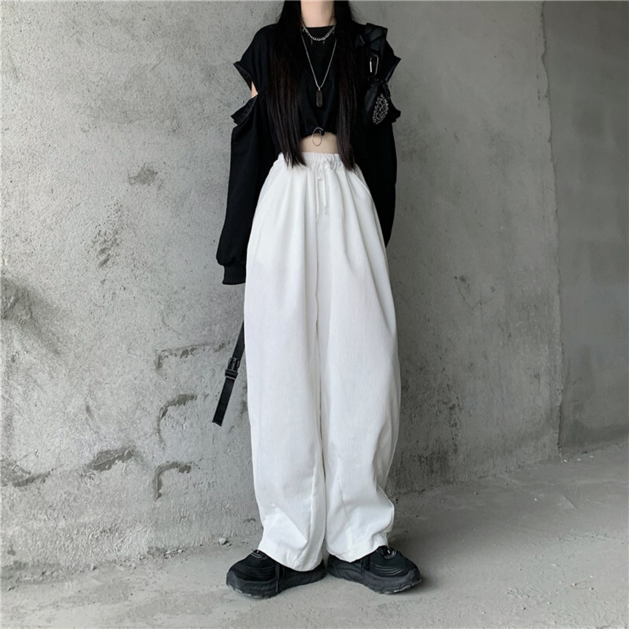コーデュロイパンツ レディース韓国ファッショントレンドホワイトルーズハイウェストウェストスリムカジュアル ショーツ ブルマー スタイル ウエスト デーモン19894011627