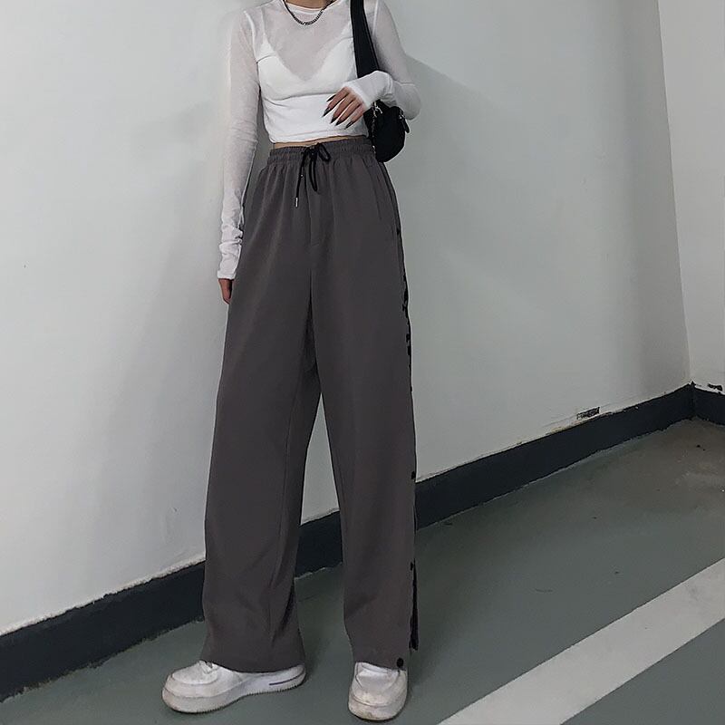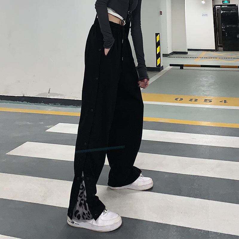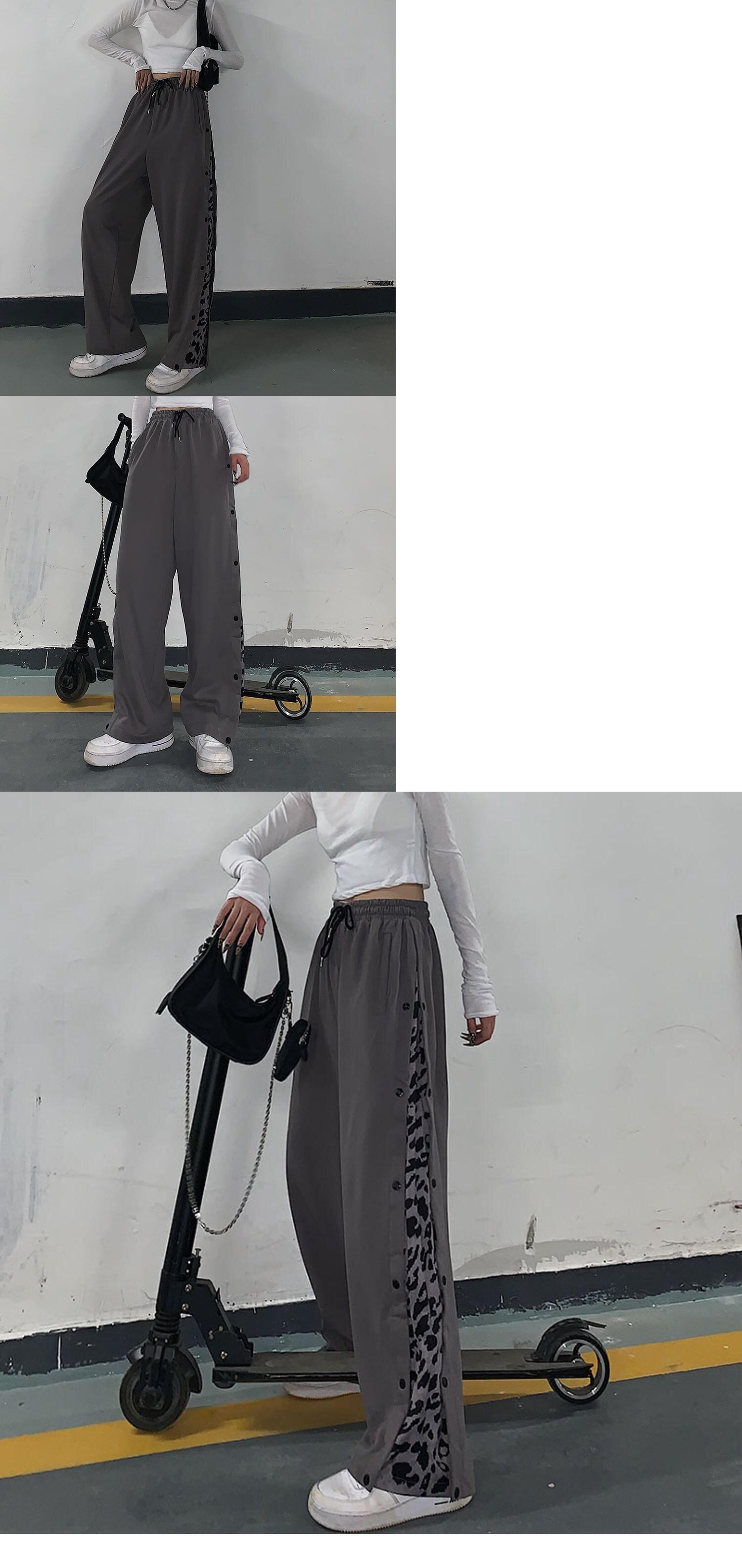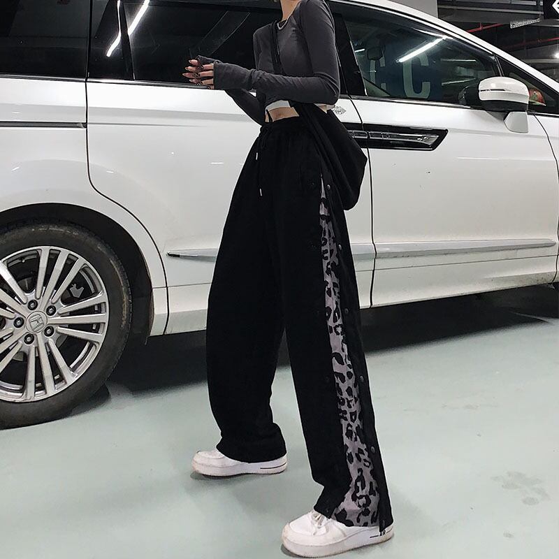パンツ レディース秋物ウィンター韓国ファッショントレンドレオパードパターンブレストワイドレッグハイウェストウェストルーズ オータム 冬物 ワイドパンツ ステッチ スタイル ウエスト デーモン15981970092