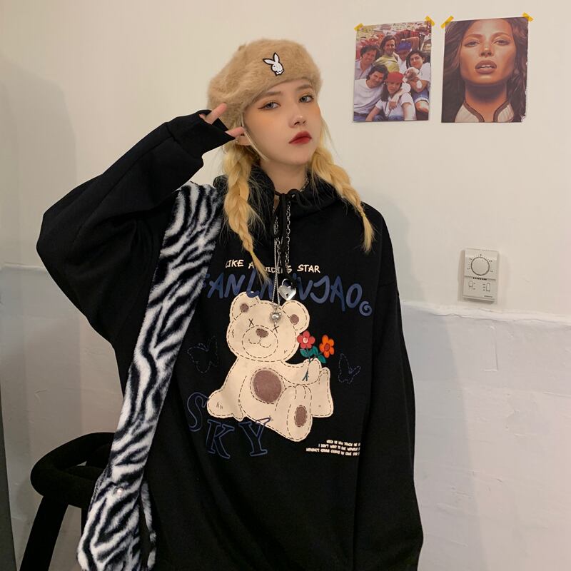 セーター レディース秋物ウィンター韓国ファッショントレンドスタンダードプリント柄ルーズフードジャケット レトロ オータム 冬物 ボーイズ スタイル デーモン72892883064