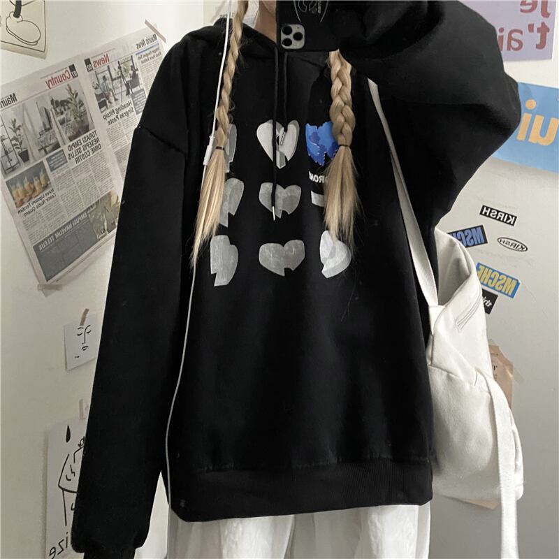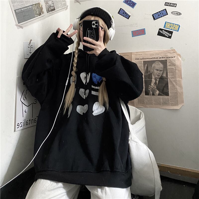 セーター レディース韓国ファッショントレンドプリントルーズフードジャケット オータム 秋物 ウィンター 冬物 ボーイズ スタイル デーモン1799595176