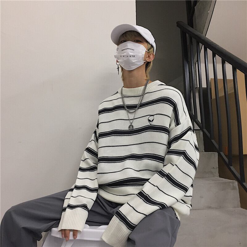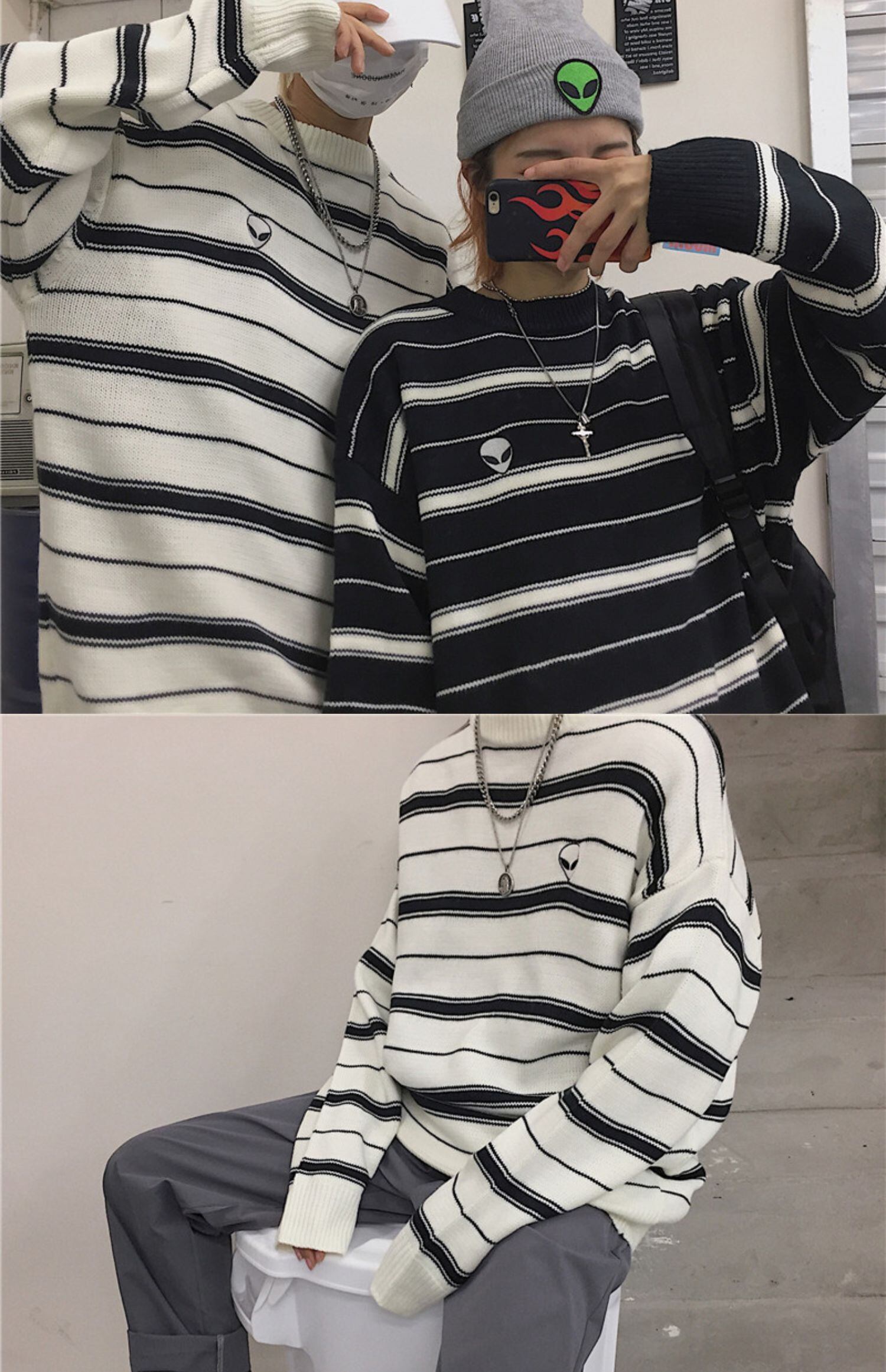 秋物ウィンターセーター レディース韓国ファッショントレンドスタイルストライプルーズプルオーバー ニットジャケット 原宿 オータム 冬物 デーモン37894780475