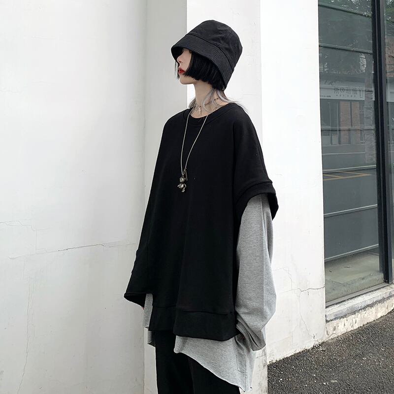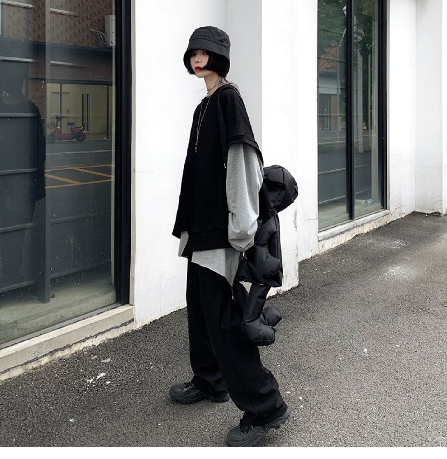セット レディース秋物トレンド韓国ファッションスタイルルーズグレートップス ラウンドネックセーター ジャケット ロング 原宿 オータム Oネック 長袖 デーモン19530125876