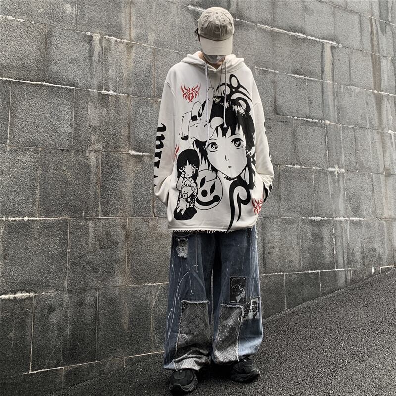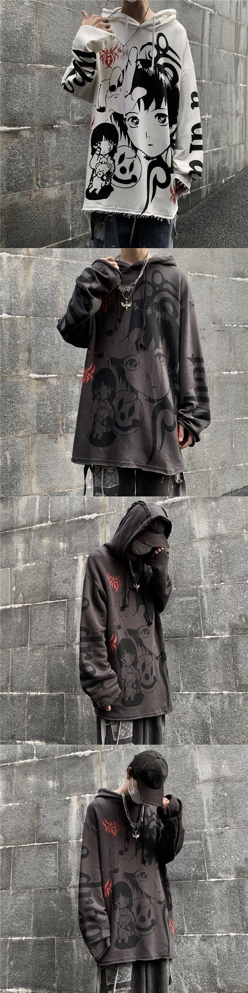 フードセーター レディース秋物韓国ファッショントレンドプリントホワイトルーズトップス ロング オータム ボーイズ スタイル 長袖 デーモン34072380839