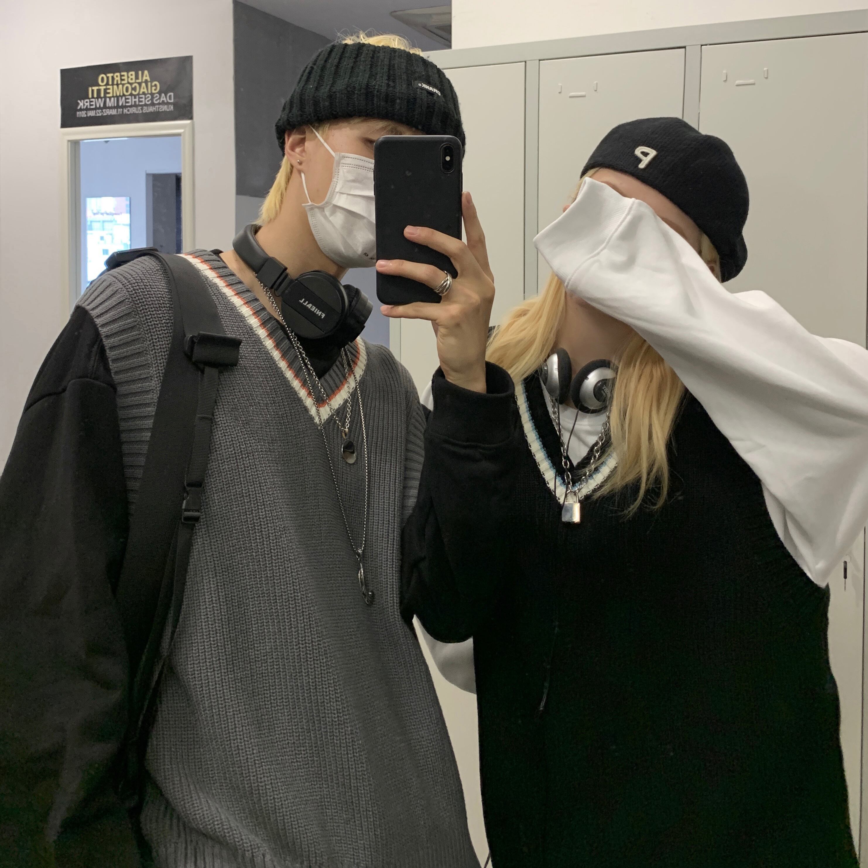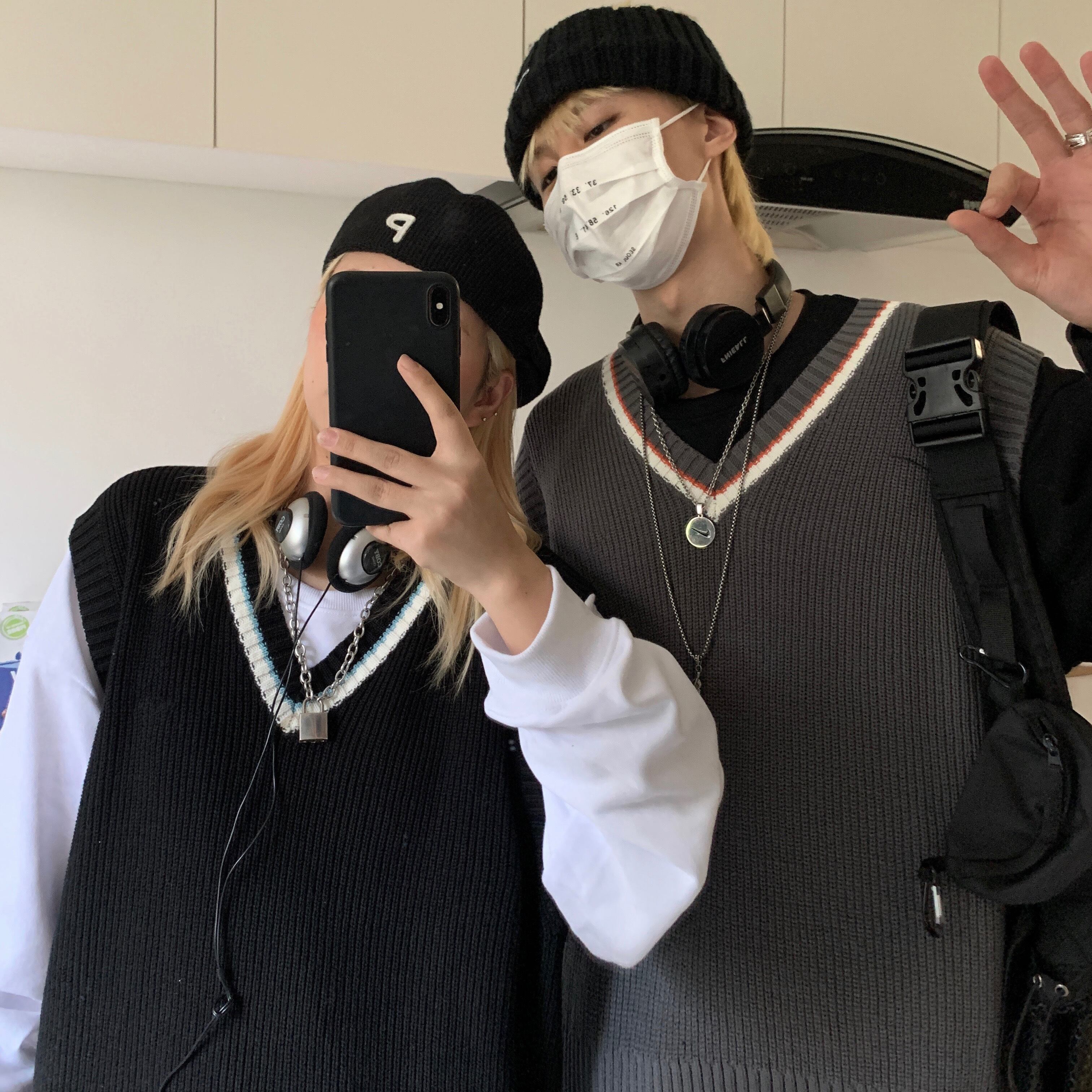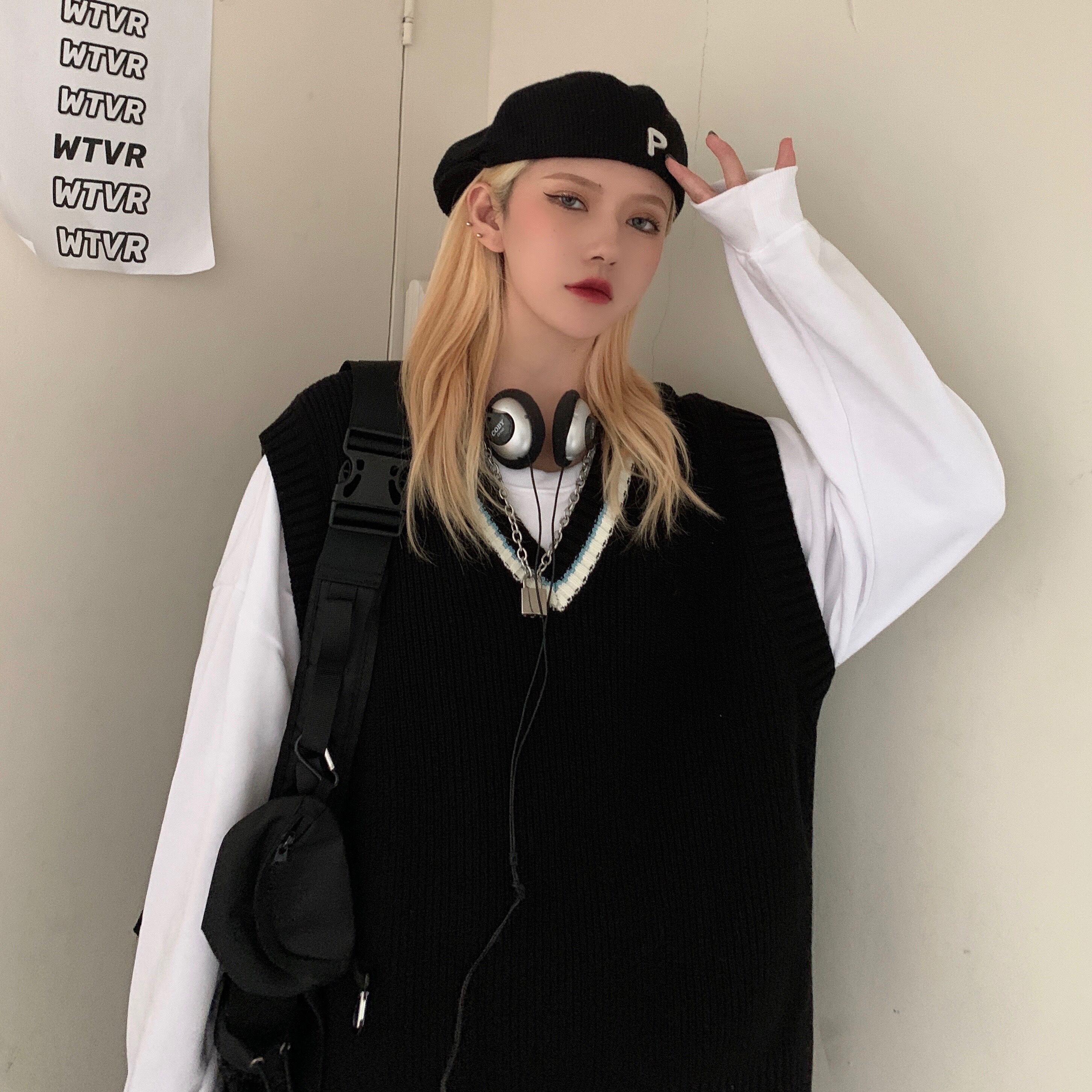 色:白いセーター,黒いセーター,黒のベスト,グレーのベスト