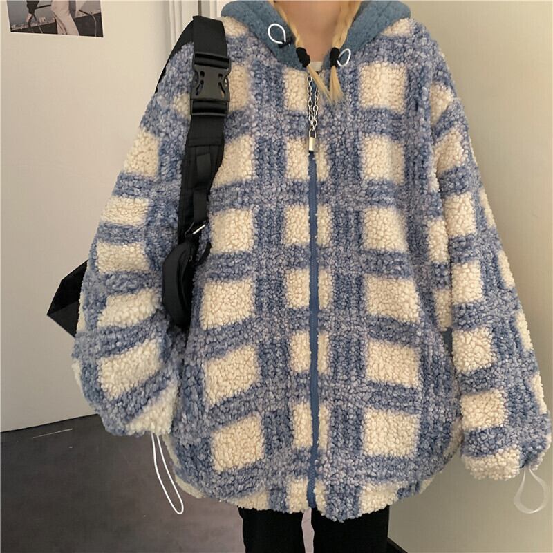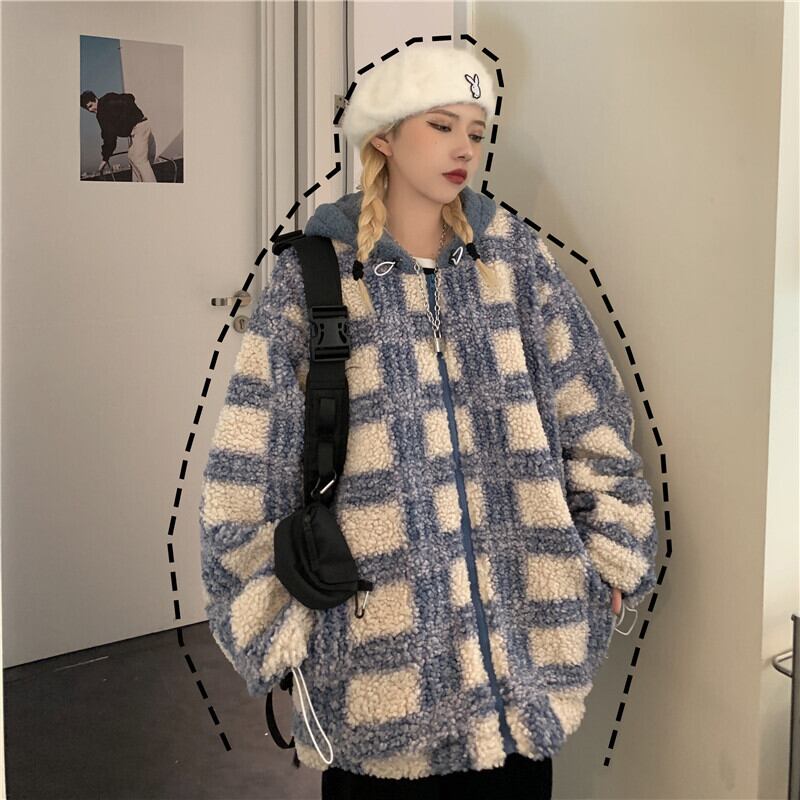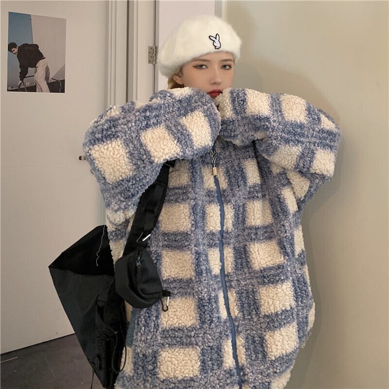 レディースウィンター韓国ファッショントレンドスタンダード格子柄ウールルーズジャケット コットン レトロ 冬物 スタイル デーモン96374387952
