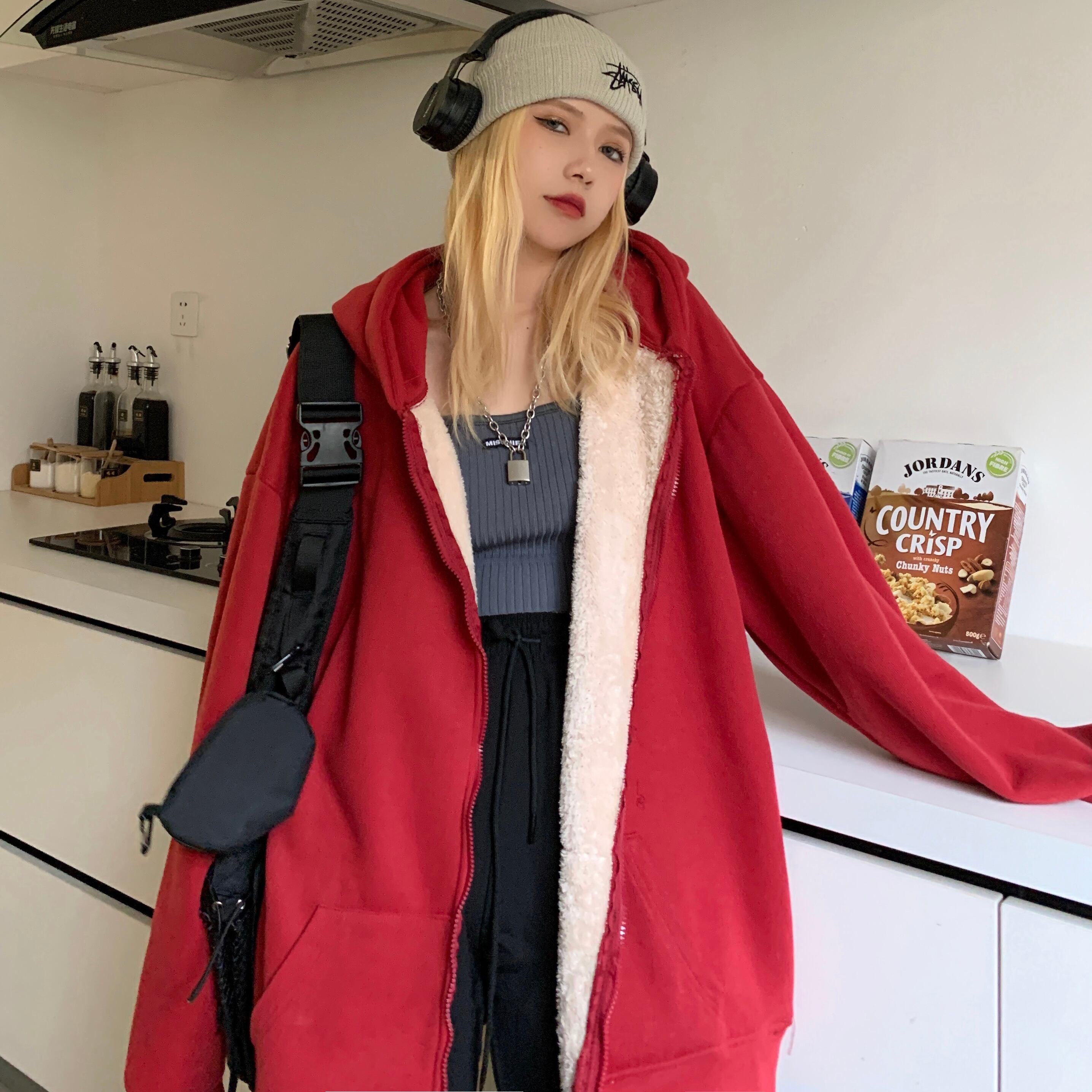 ジャケット レディース秋物ウィンター韓国ファッショントレンドカラールーズフードセーター カーディガン オータム 冬物 ピュア スタイル デーモン24468629097