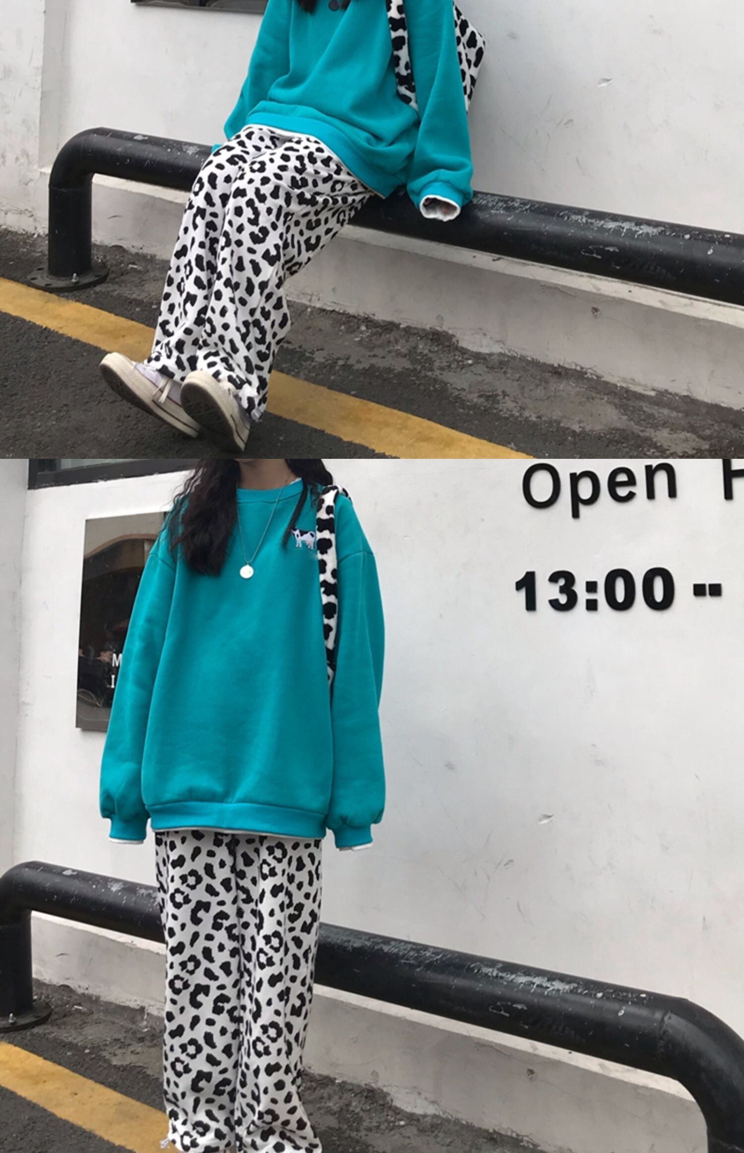 色:湖の青のセーター,ラズベリーのスウェットシャツ,カウパンツ