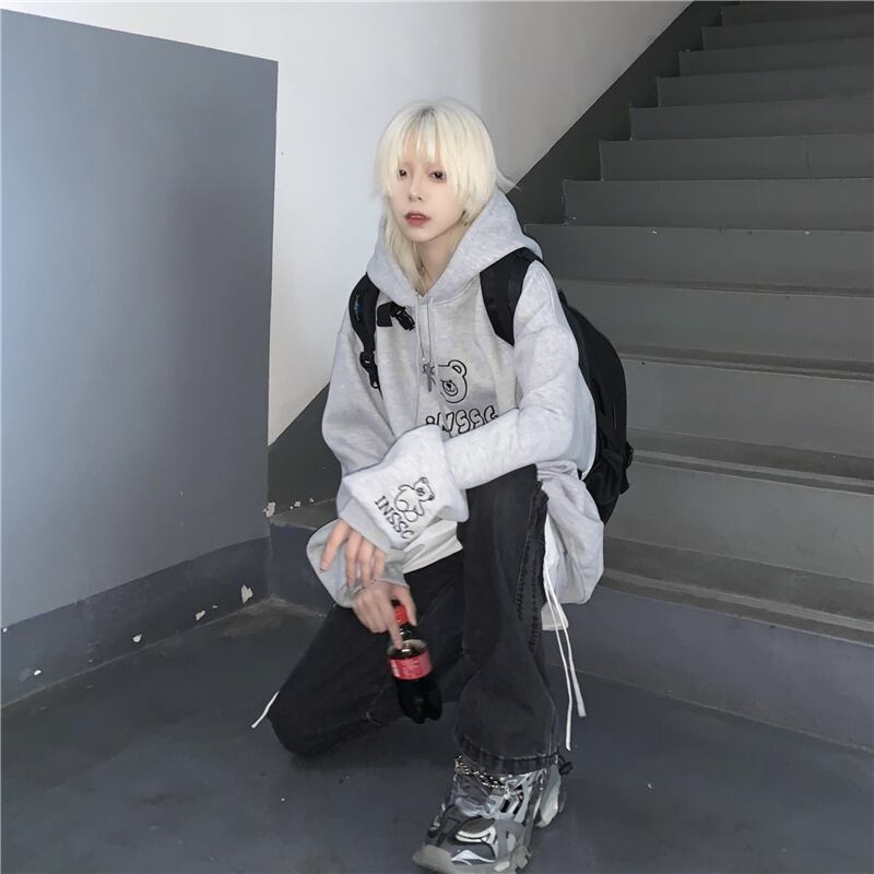 セーター レディース秋物ウィンター韓国ファッショントレンドプリントルーズフードジャケット オータム 冬物 ボーイズ スタイル デーモン14239945639