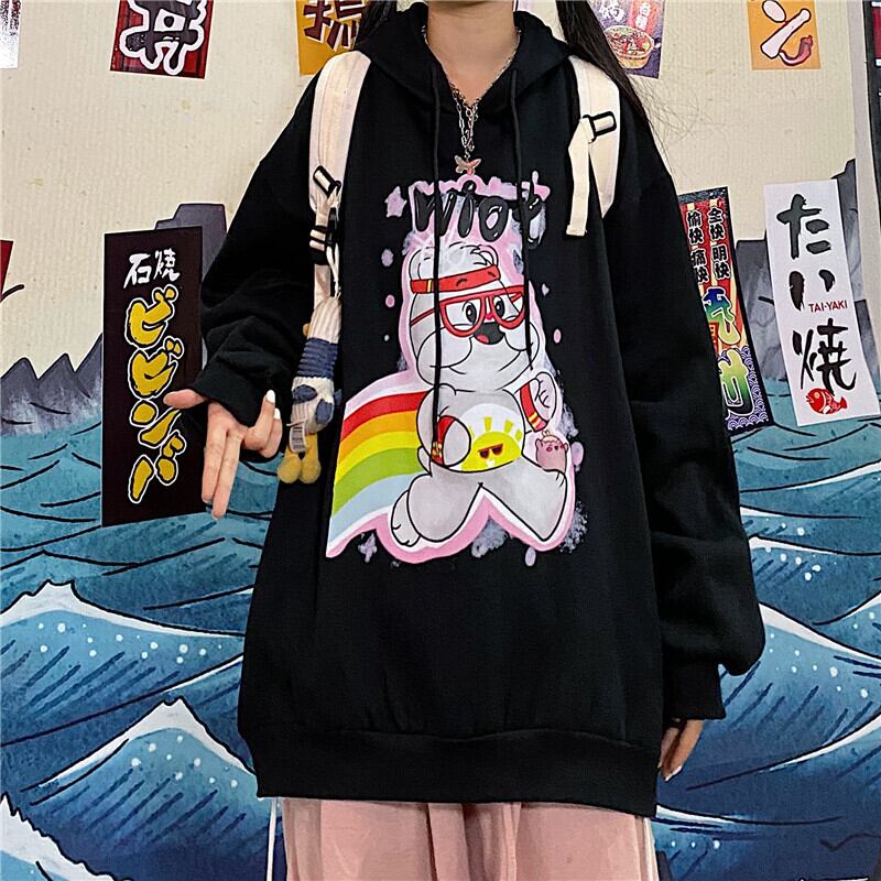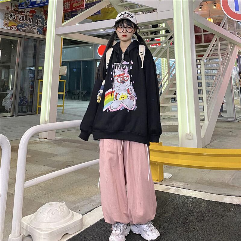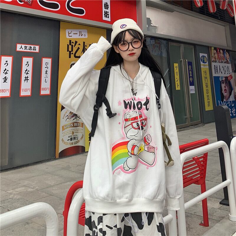 セーター レディース韓国ファッショントレンドスタンダードプリントルーズフードジャケット レトロ オータム 秋物 ウィンター 冬物 ボーイズ スタイル デーモン54649779038