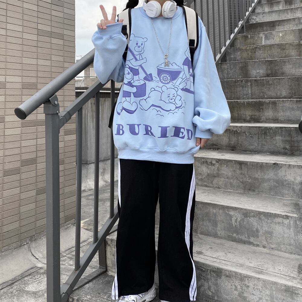 トップス 韓国ファッショントレンドプリント柄ルーズ厚みセーター レディース オータム 秋物 ウィンター 冬物 スタイル デーモン46565732319