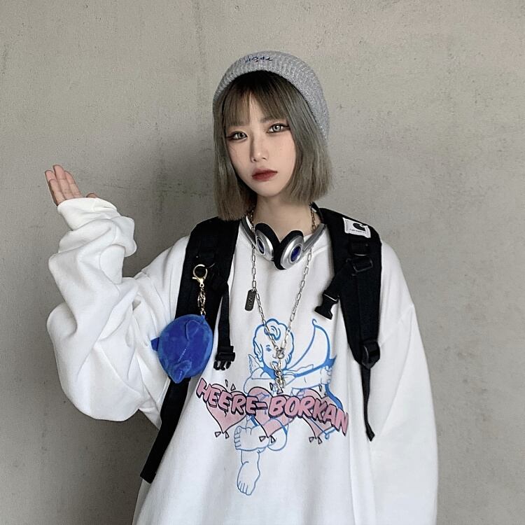セーター レディース秋物ウィンター韓国ファッショントレンドプリント柄ルーズラウンドネックジャケット オータム 冬物 Oネック ボーイズ スタイル デーモン33554957755