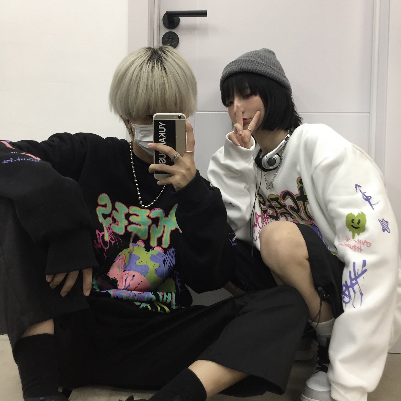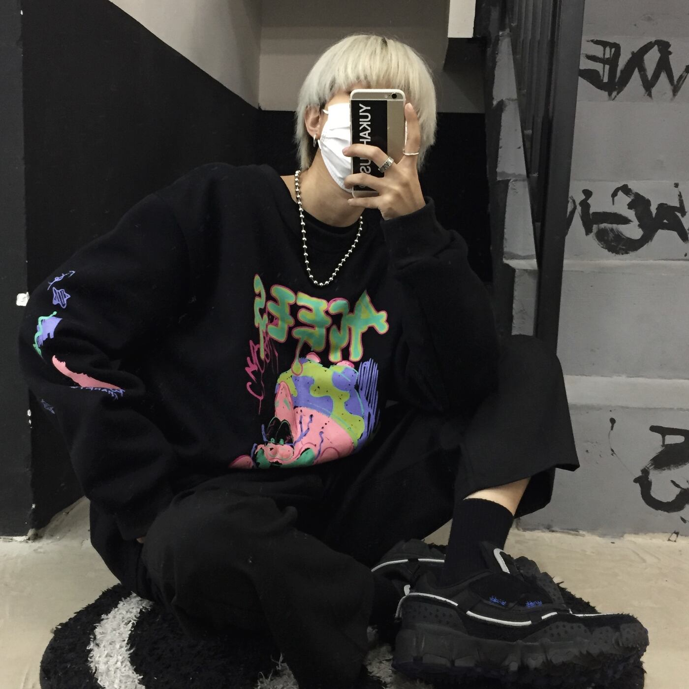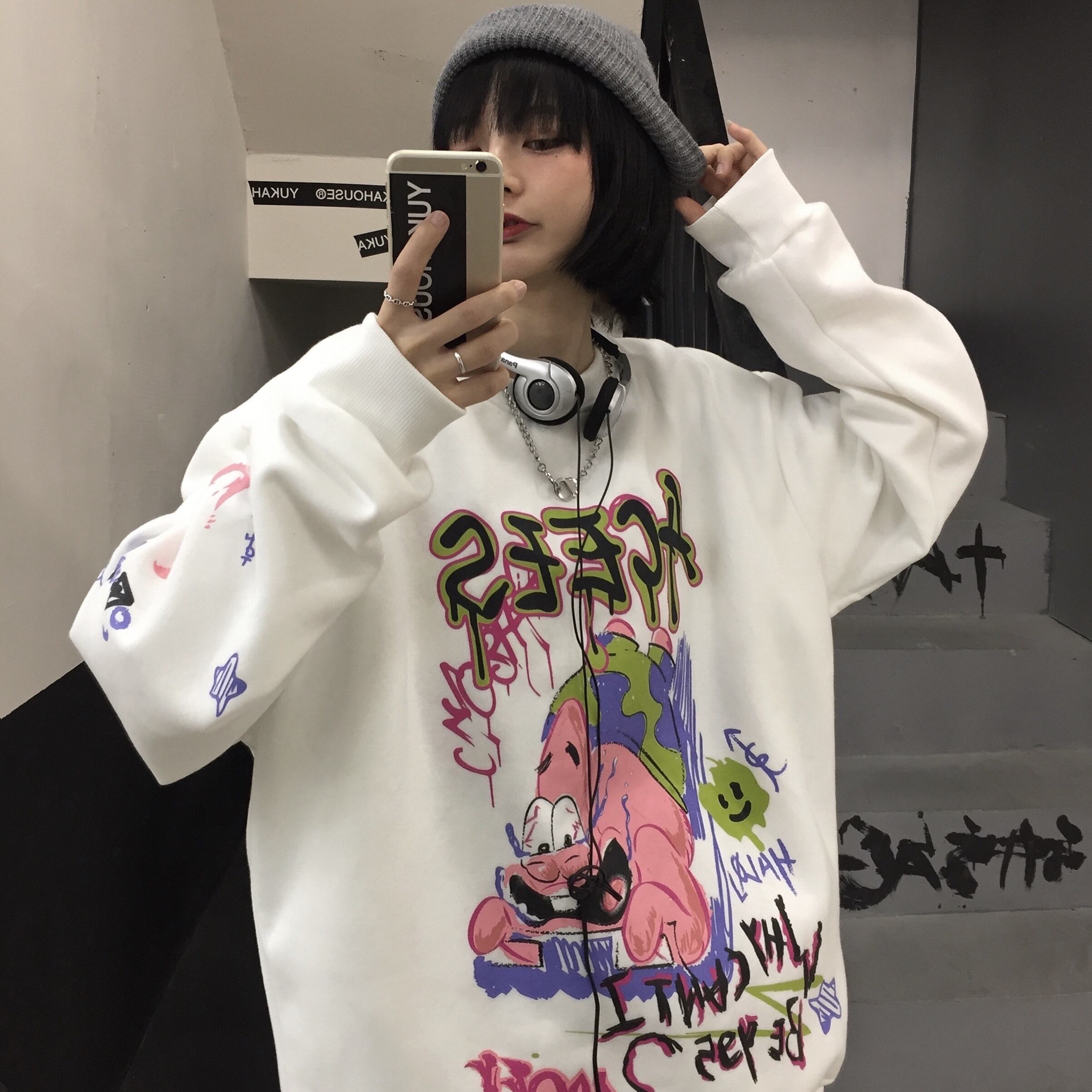 セーター レディース秋物ウィンター韓国ファッショントレンドプリントルーズフードジャケット オータム 冬物 ボーイズ スタイル デーモン22535657120