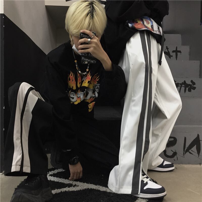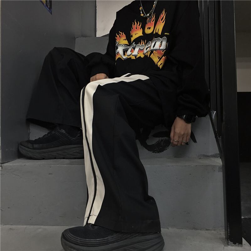ワイドレッグパンツ 秋物ウィンター韓国ファッショントレンドジッパールーズ薄手カジュアル オータム 冬物 ワイドパンツ ボーイズ スタイル デーモン4320382249