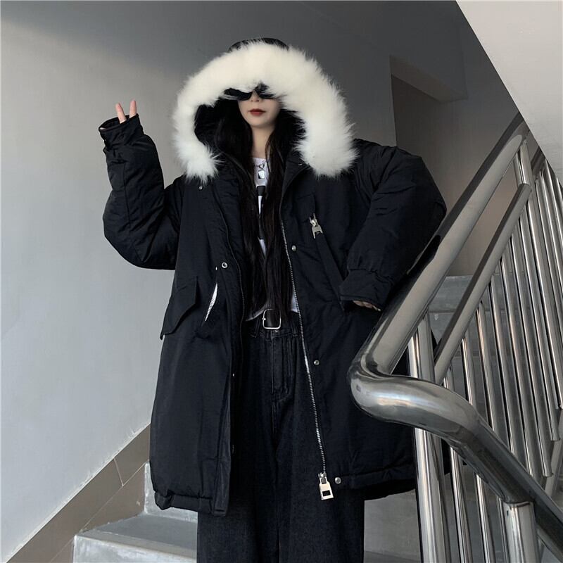 ジャケット レディースウィンター韓国ファッショントレンドファーカラールーズ コットン 冬物 スタイル ミドル丈 デーモン35090477834