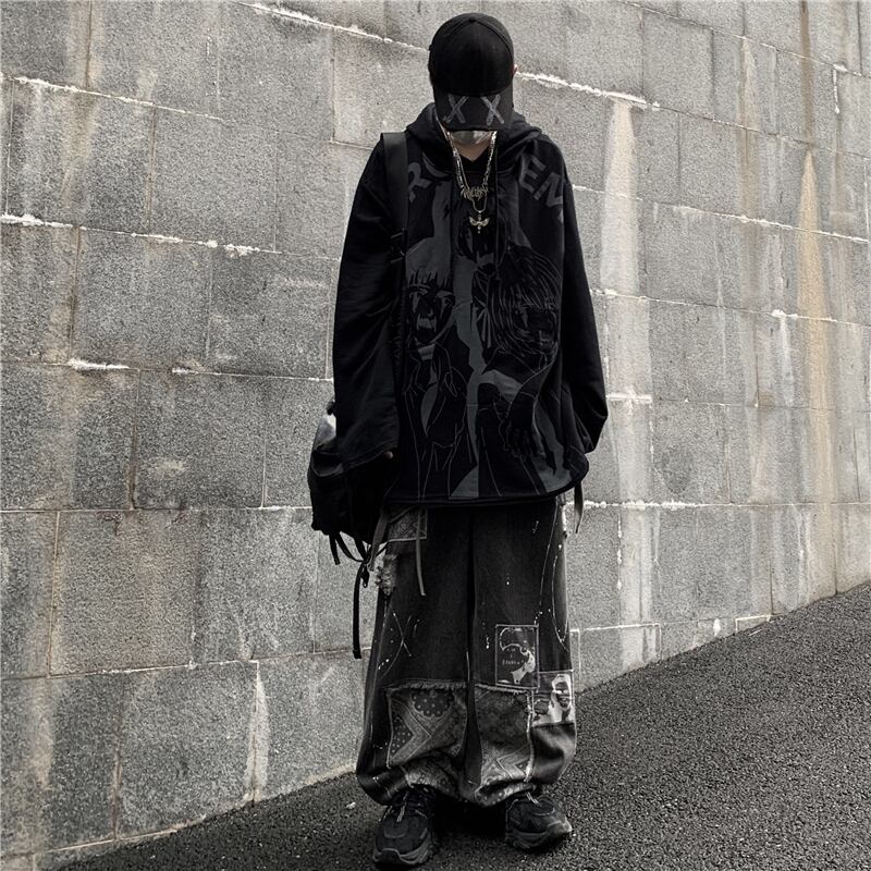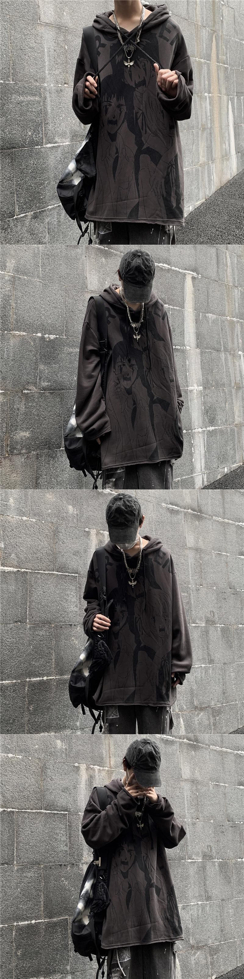 セーター レディース秋物ウィンター韓国ファッショントレンドダークプリント柄ルーズフード厚みジャケット オータム 冬物 ボーイズ スタイル デーモン43240509892
