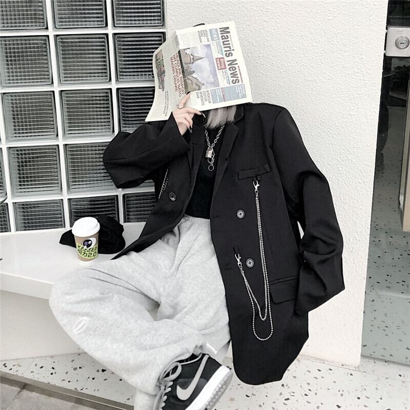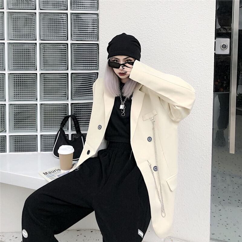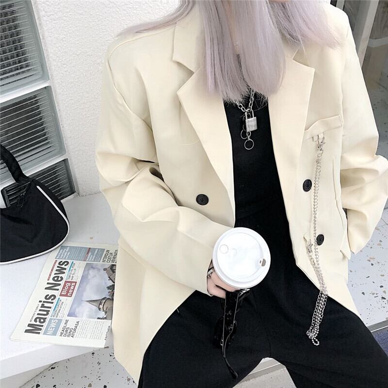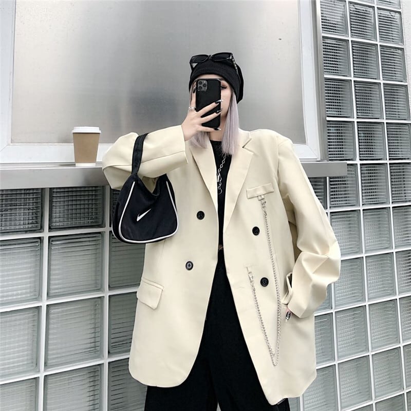 ブレザー 秋物ウィンター韓国ファッショントレンドルーズカジュアルホワイトチェーン トップス オータム 冬物 スタイル デーモン21749922119