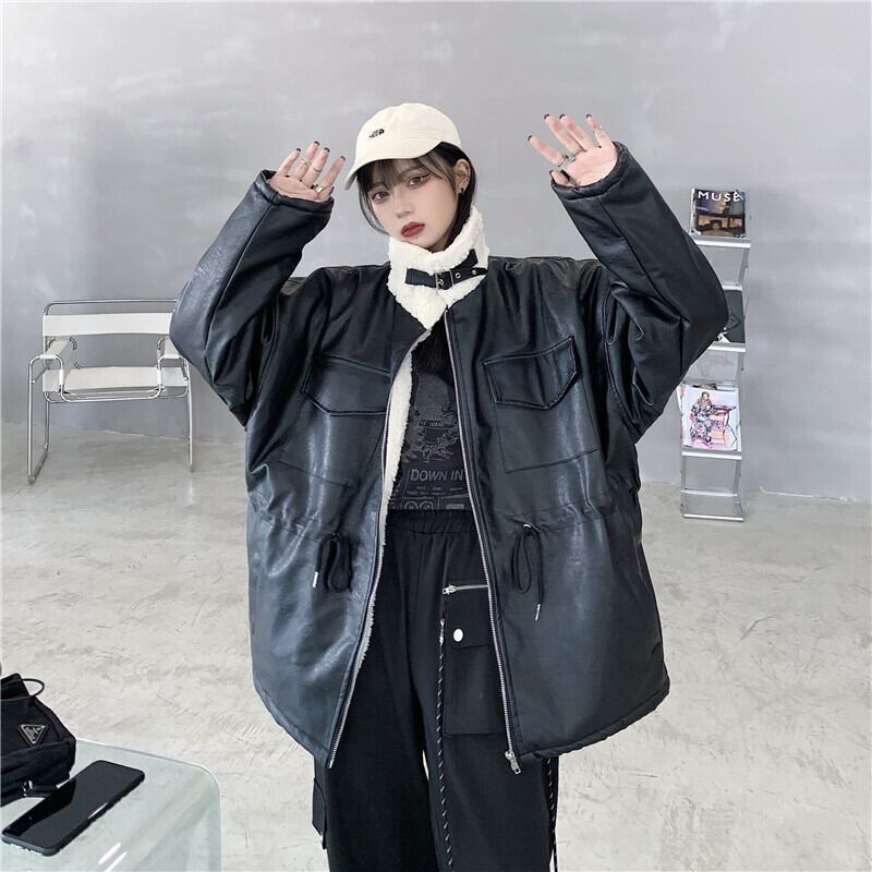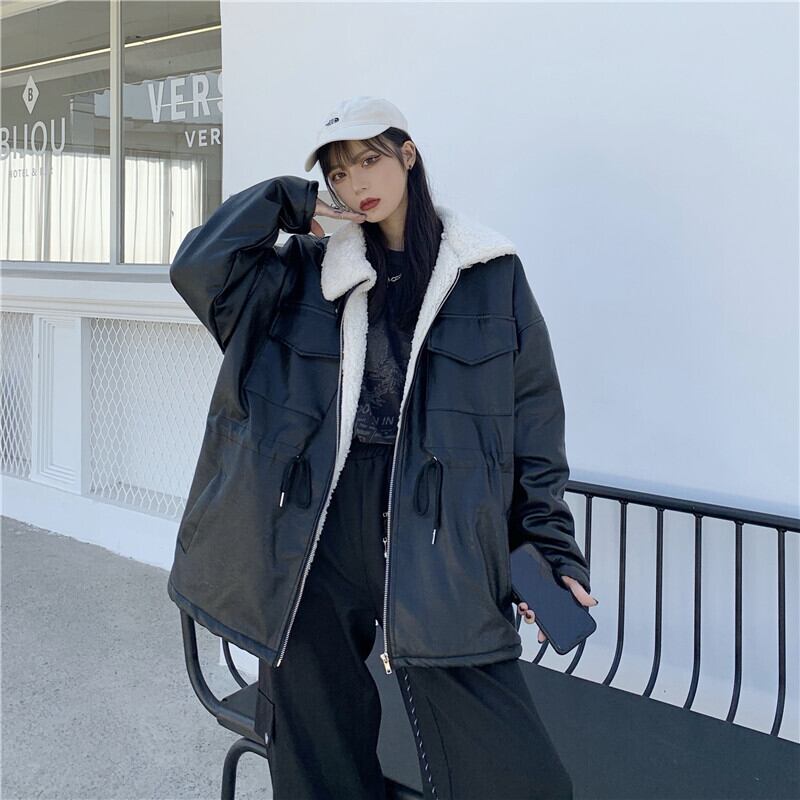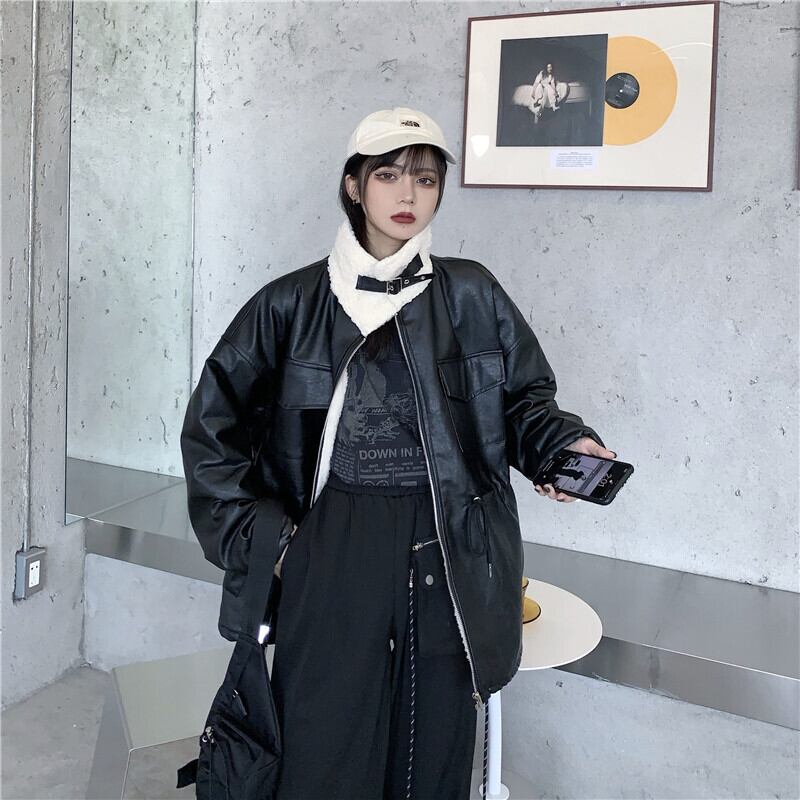 ウィンター韓国ファッショントレンドルーズレザージャケット コットン 冬物 スタイル デーモン41890997722