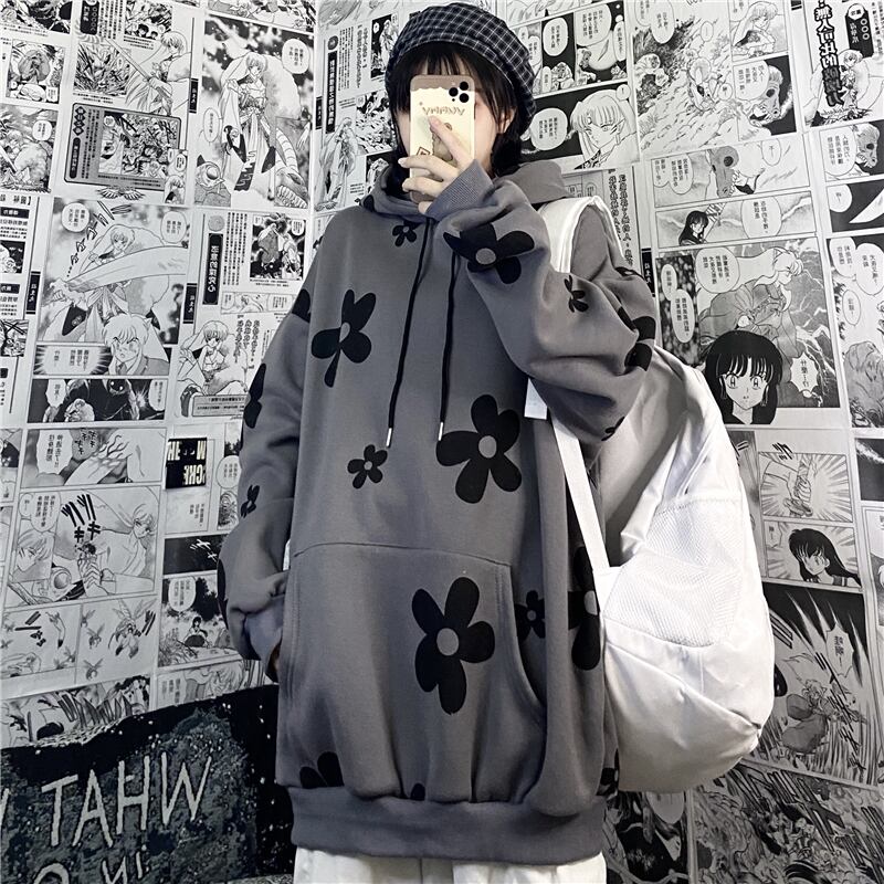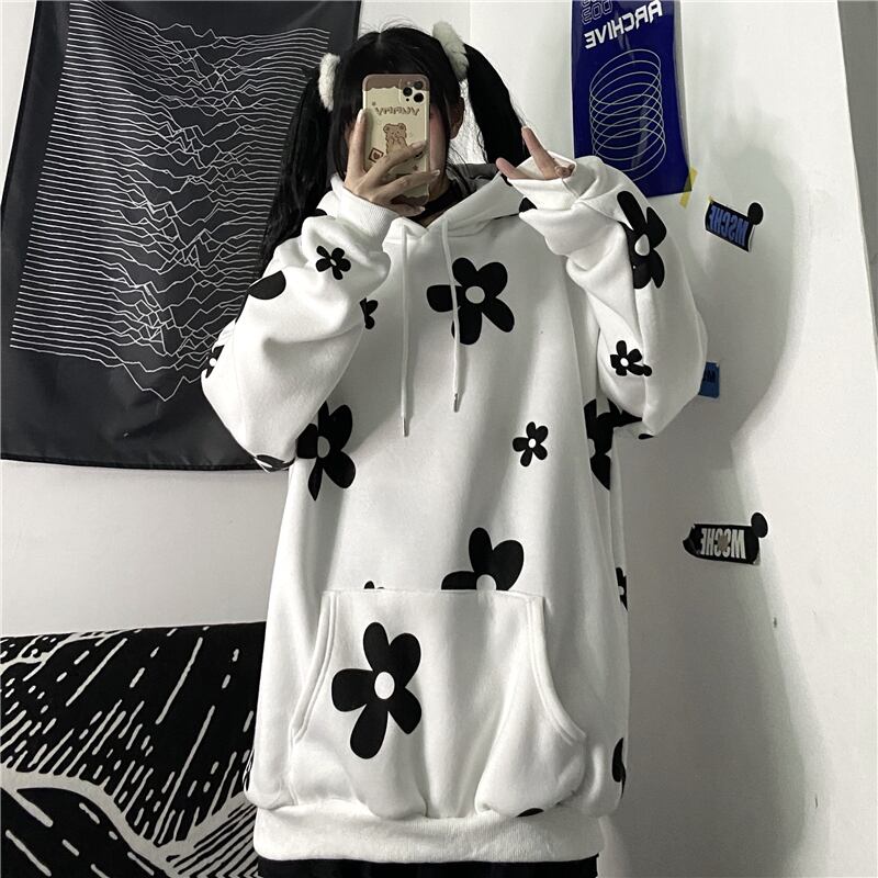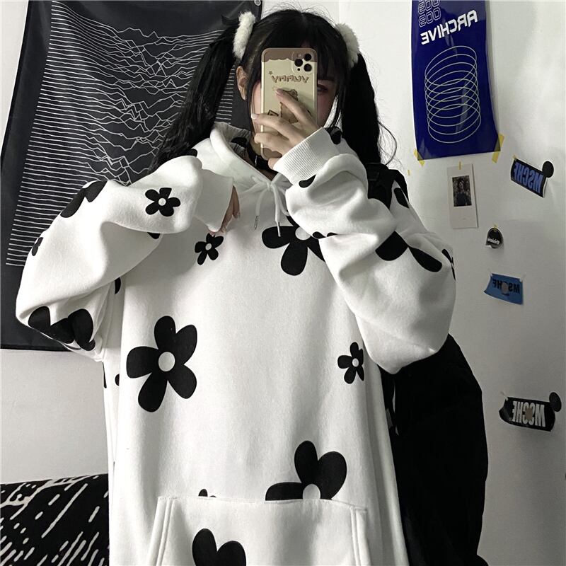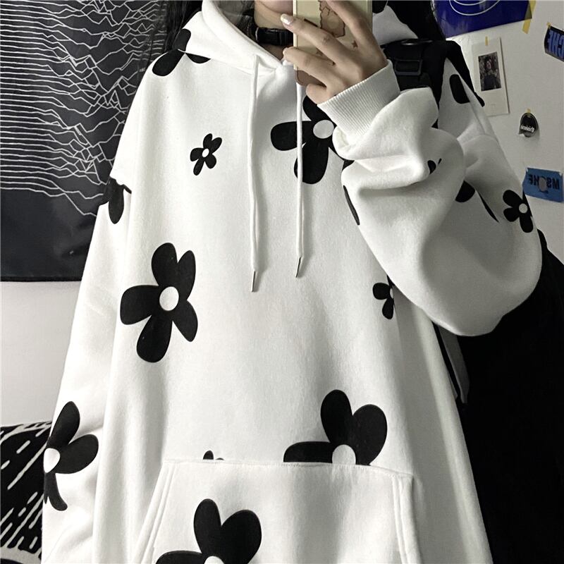 フードセーター レディース秋物ウィンター韓国ファッショントレンドFlowerデザイン プリント柄ルーズ厚みジャケット オータム 冬物 フラワーデザイン スタイル デーモン81984761501
