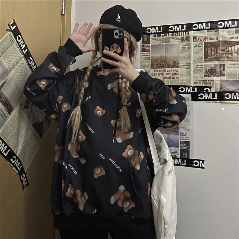 セーター レディース韓国ファッショントレンドプリント柄ルーズ厚みフードジャケット オータム 秋物 ウィンター 冬物 スタイル デーモン56003757886