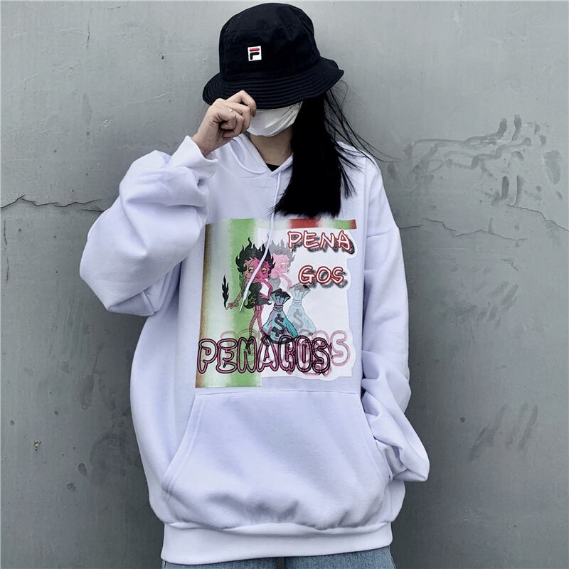 フードセーター レディース秋物ウィンター韓国ファッショントレンドプリントブラックルーズ厚みジャケット オータム 冬物 ボーイズ スタイル デーモン28983587988