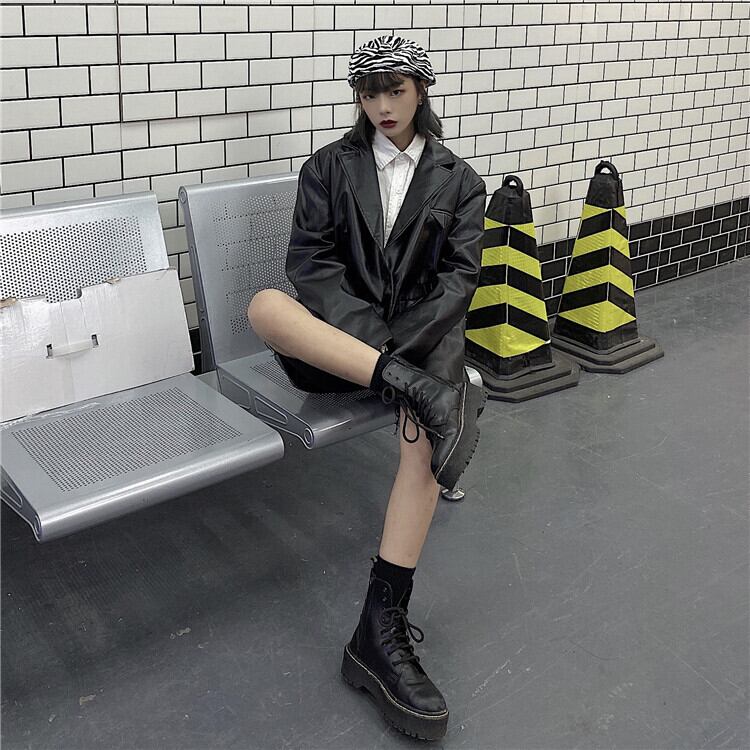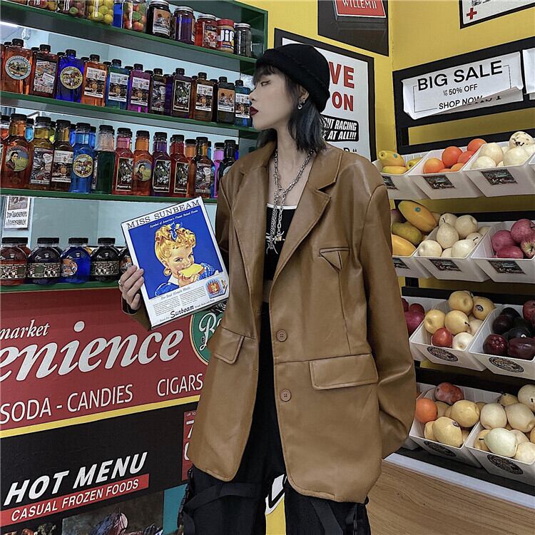 秋物ウィンタージャケット レディース韓国ファッショントレンドスタンダードルーズレザー レトロ オータム 冬物 ボーイズ スタイル デーモン11386622962